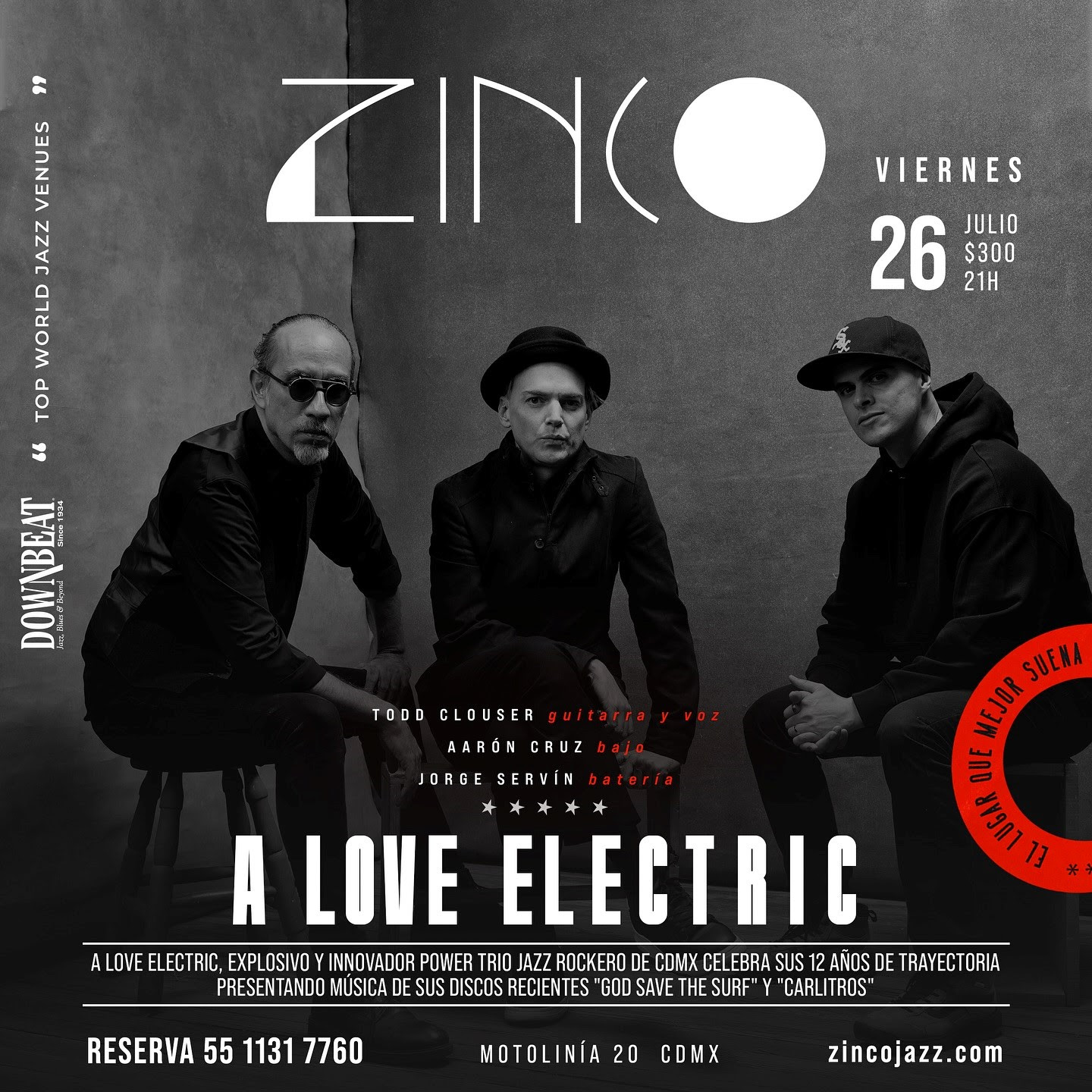 El viernes 26 de julio A Love Electric se presentará en el ZINCO Jazz Club y el domingo 28 de julio es el turno del Film Club Café que abre sus puertas para una noche de Sunday Surf Espectacular.