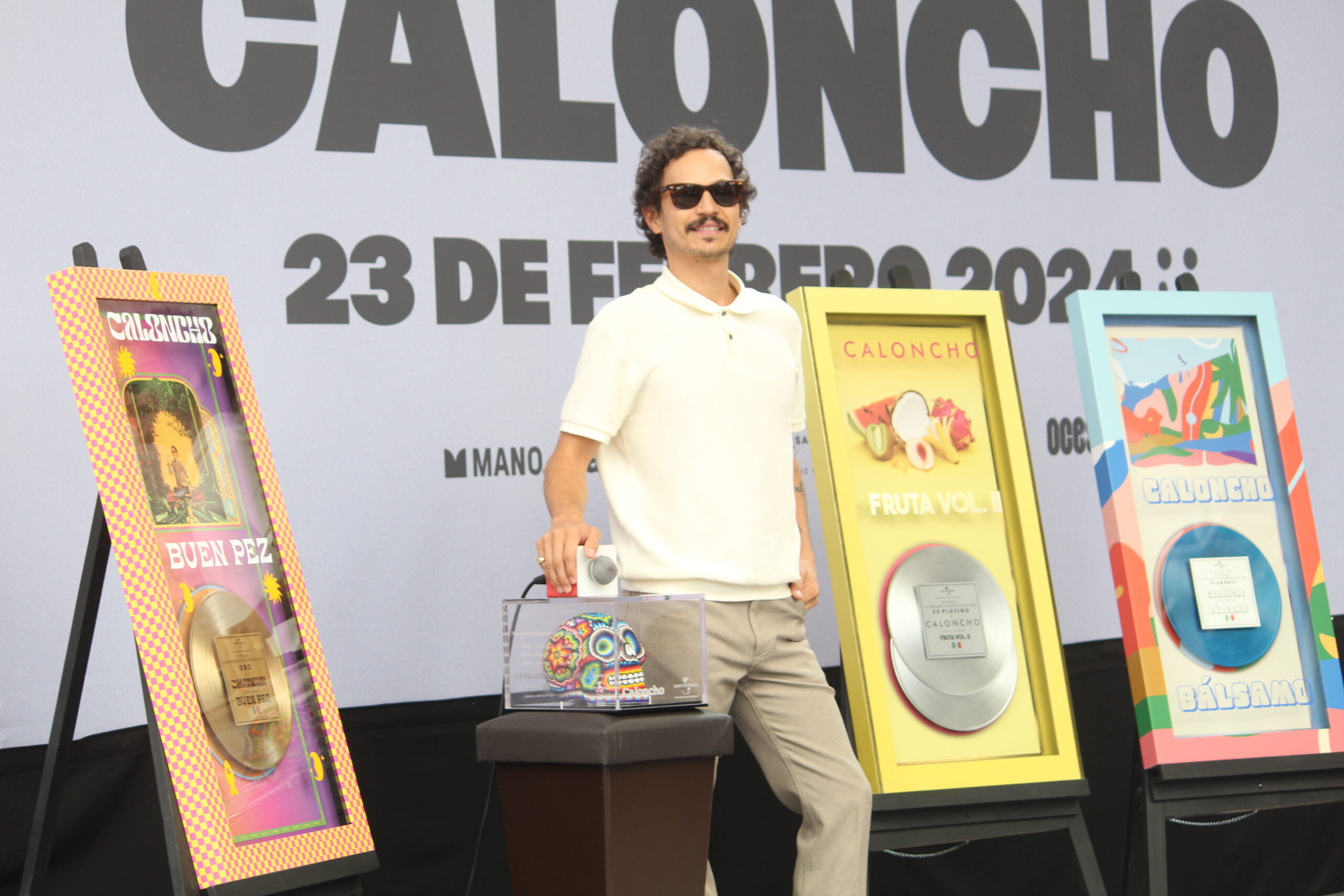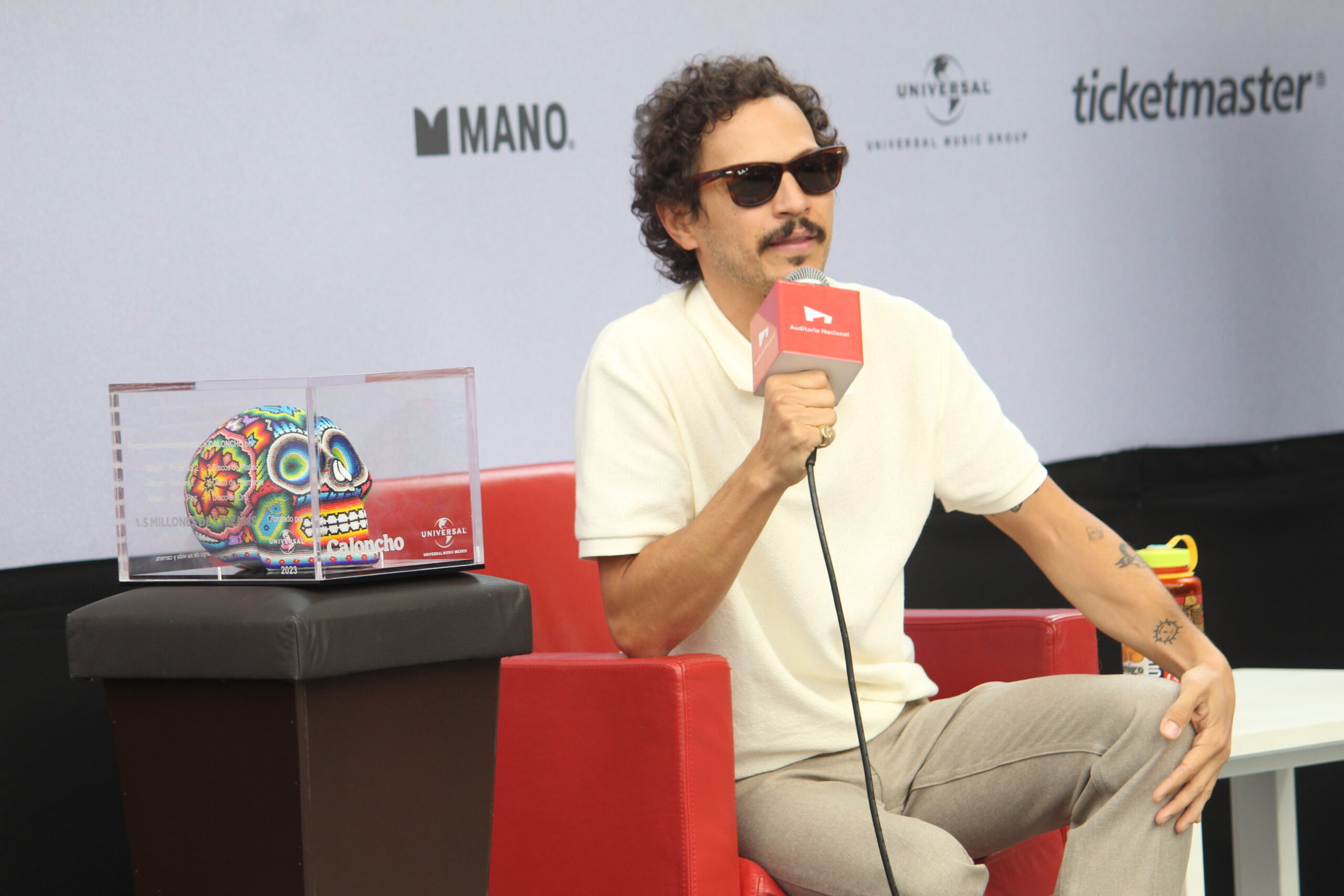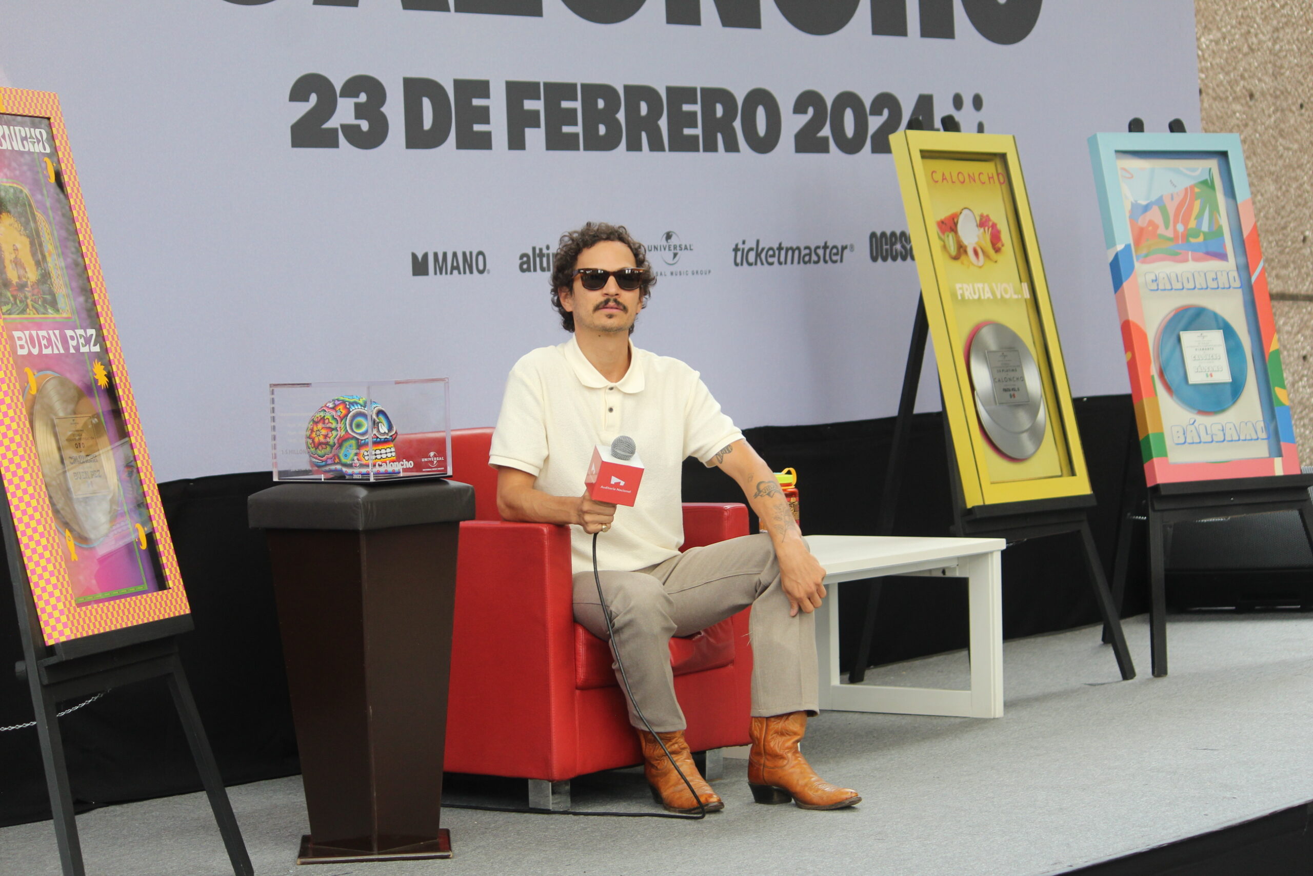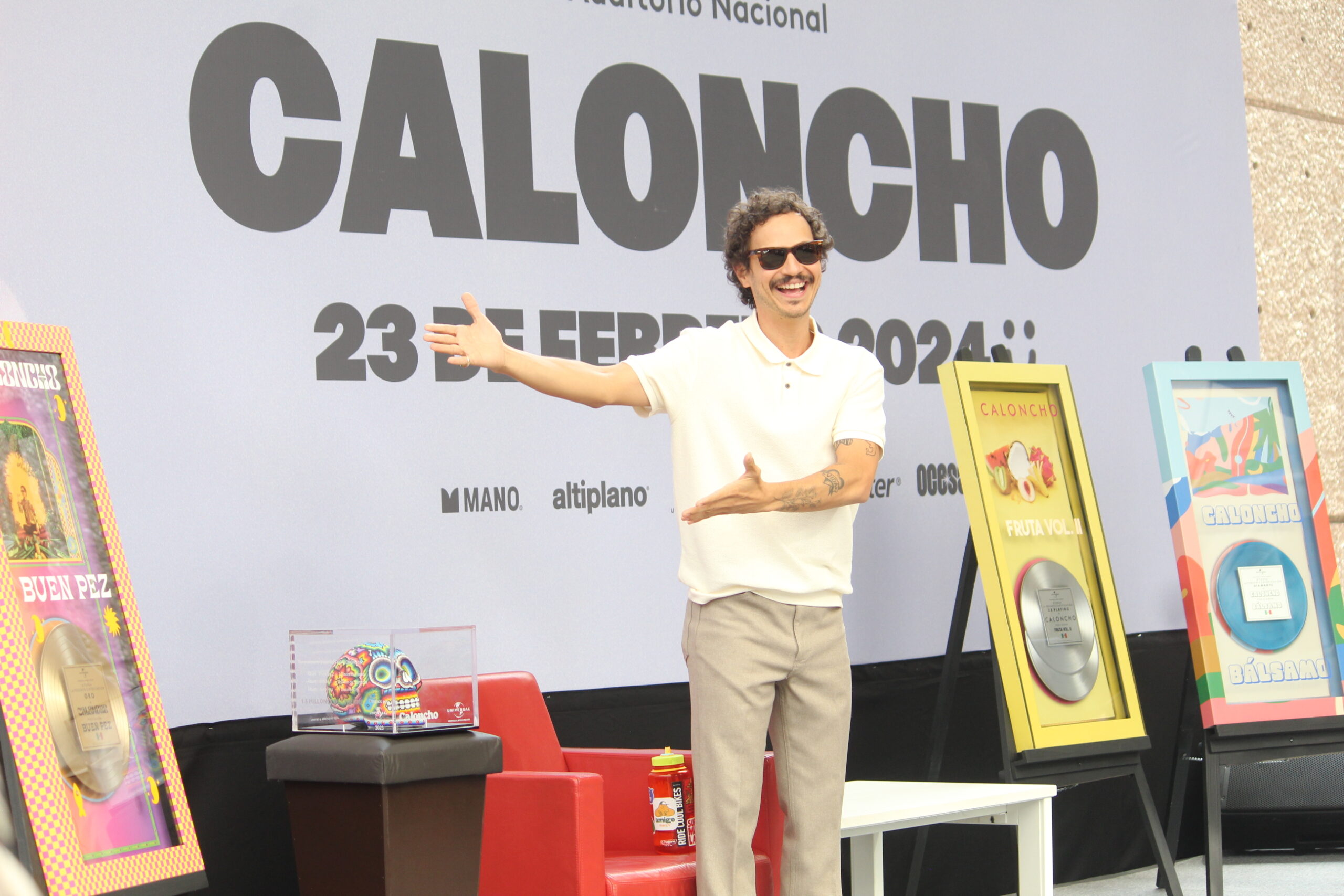 El músico Caloncho presento una conferencia de prensa en el Auditorio Nacional para anunciar detalles sobre su próximo concierto del 23 de febrero del siguiente año, donde su equipo de Universal aprovecho la oportunidad para otorgarle reconocimientos por sus 10 años de trayectoria.