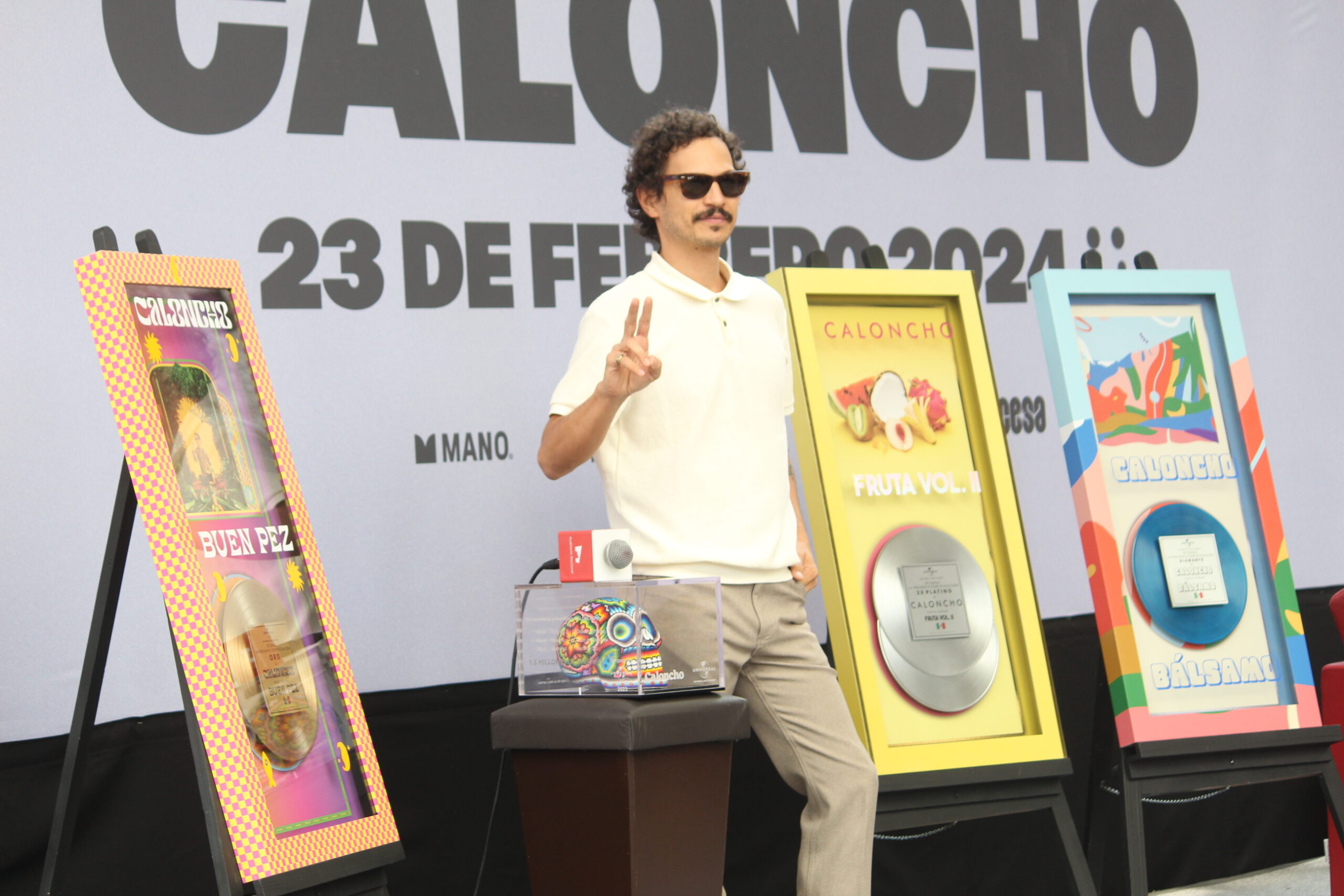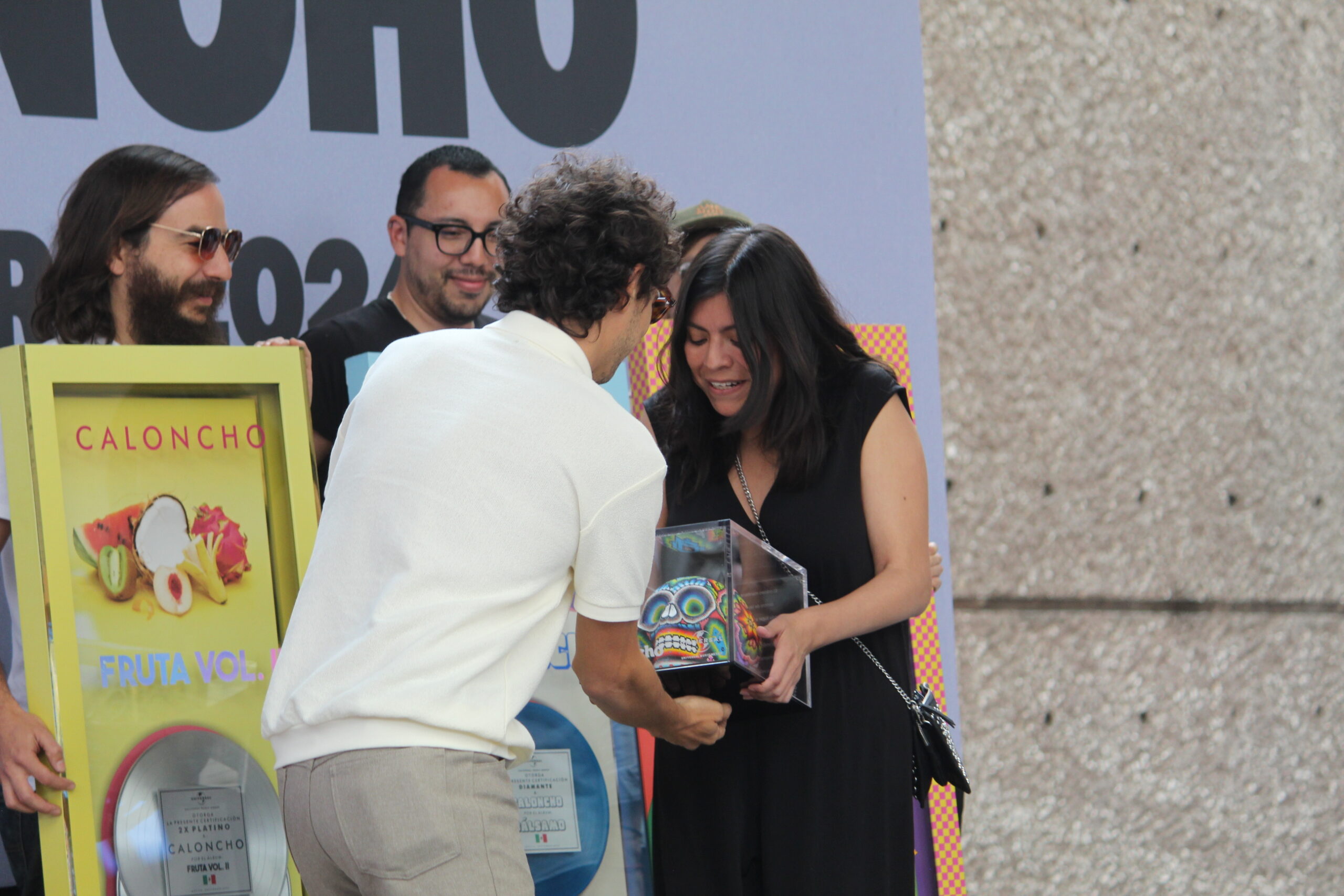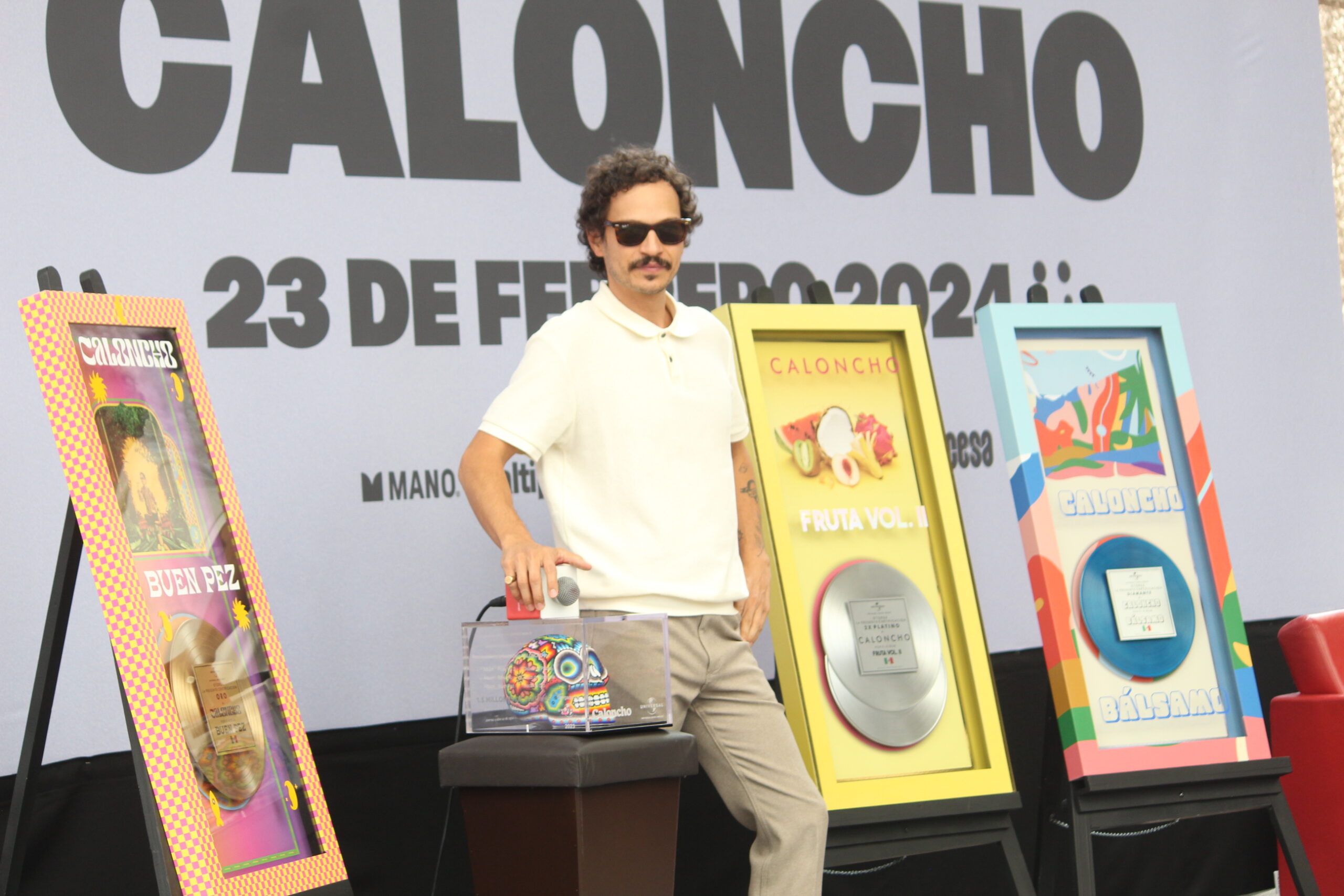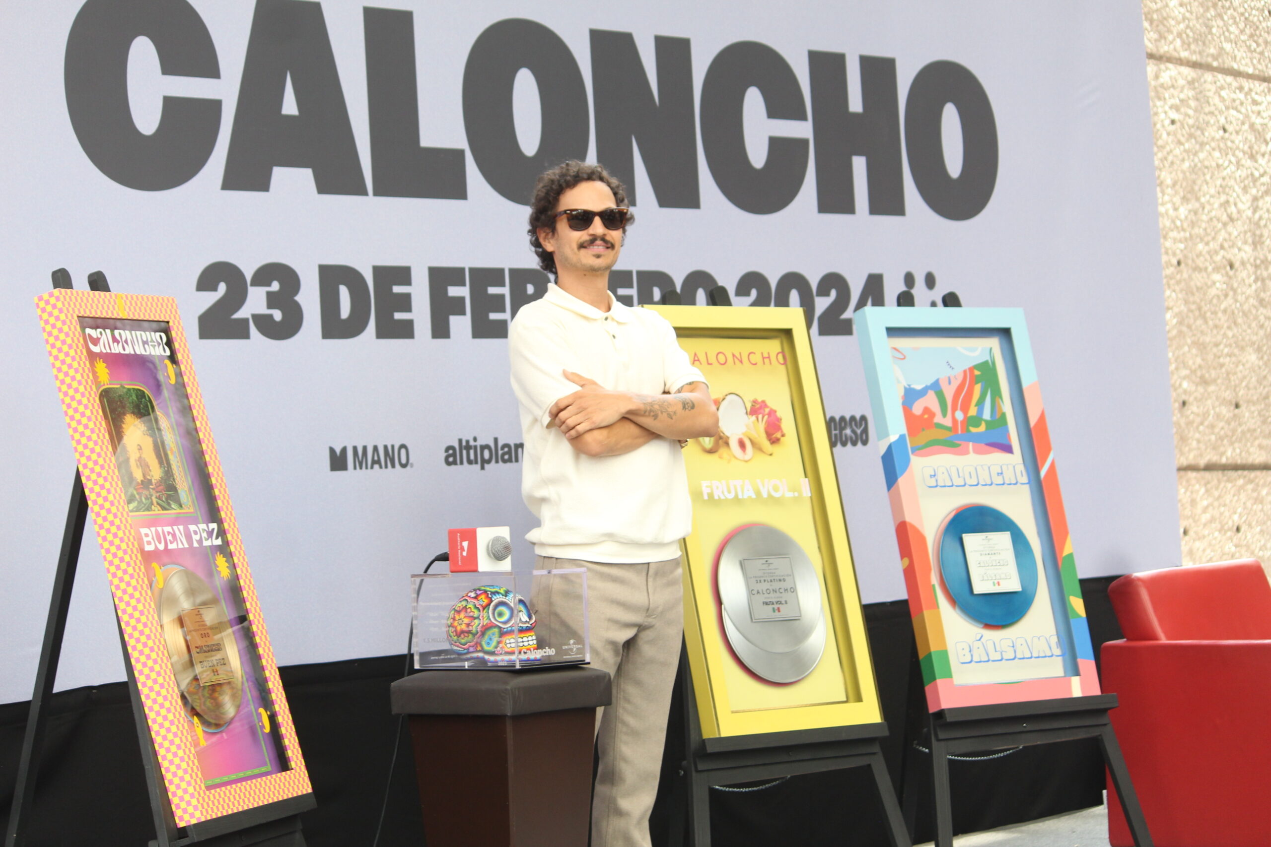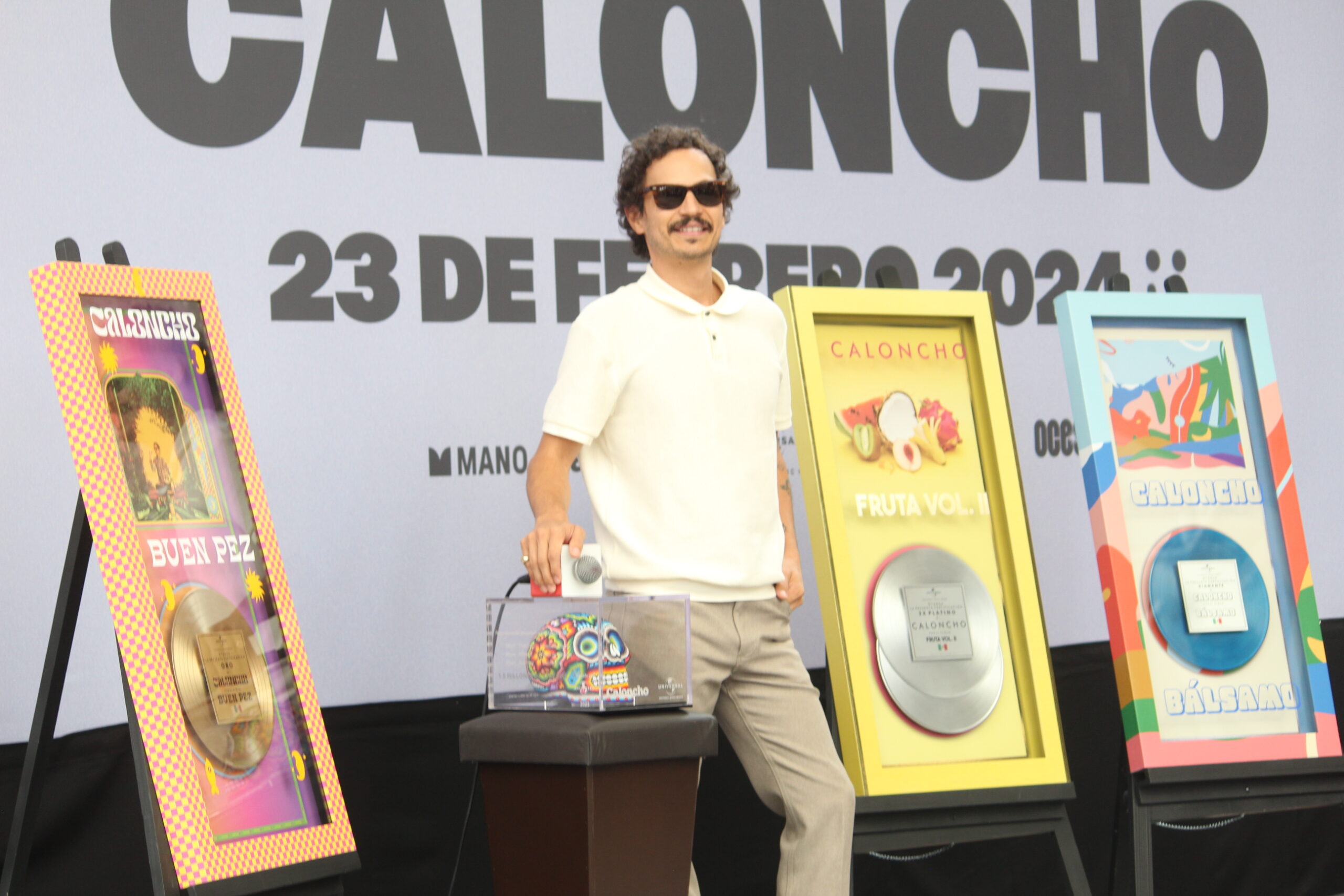 El músico Caloncho presento una conferencia de prensa en el Auditorio Nacional para anunciar detalles sobre su próximo concierto del 23 de febrero del siguiente año, donde su equipo de Universal aprovecho la oportunidad para otorgarle reconocimientos por sus 10 años de trayectoria.