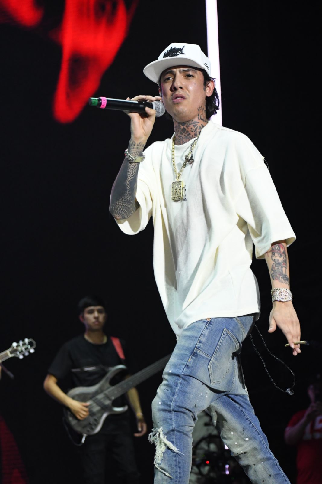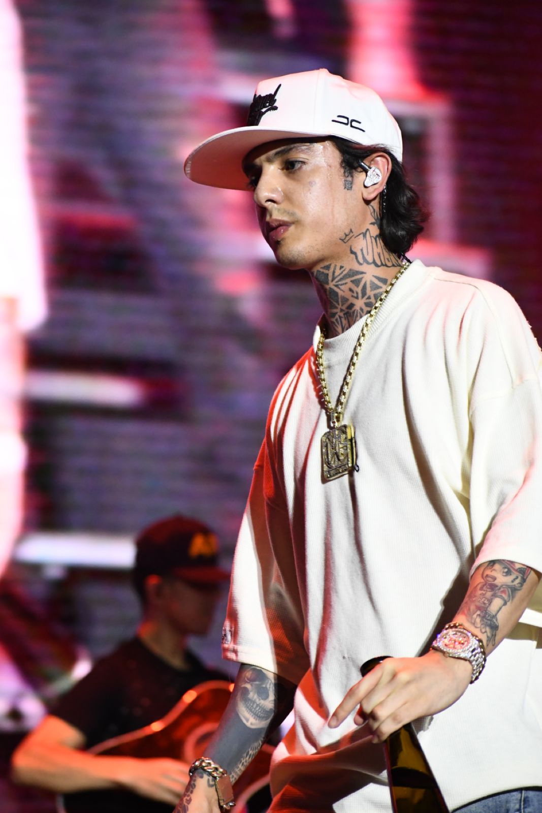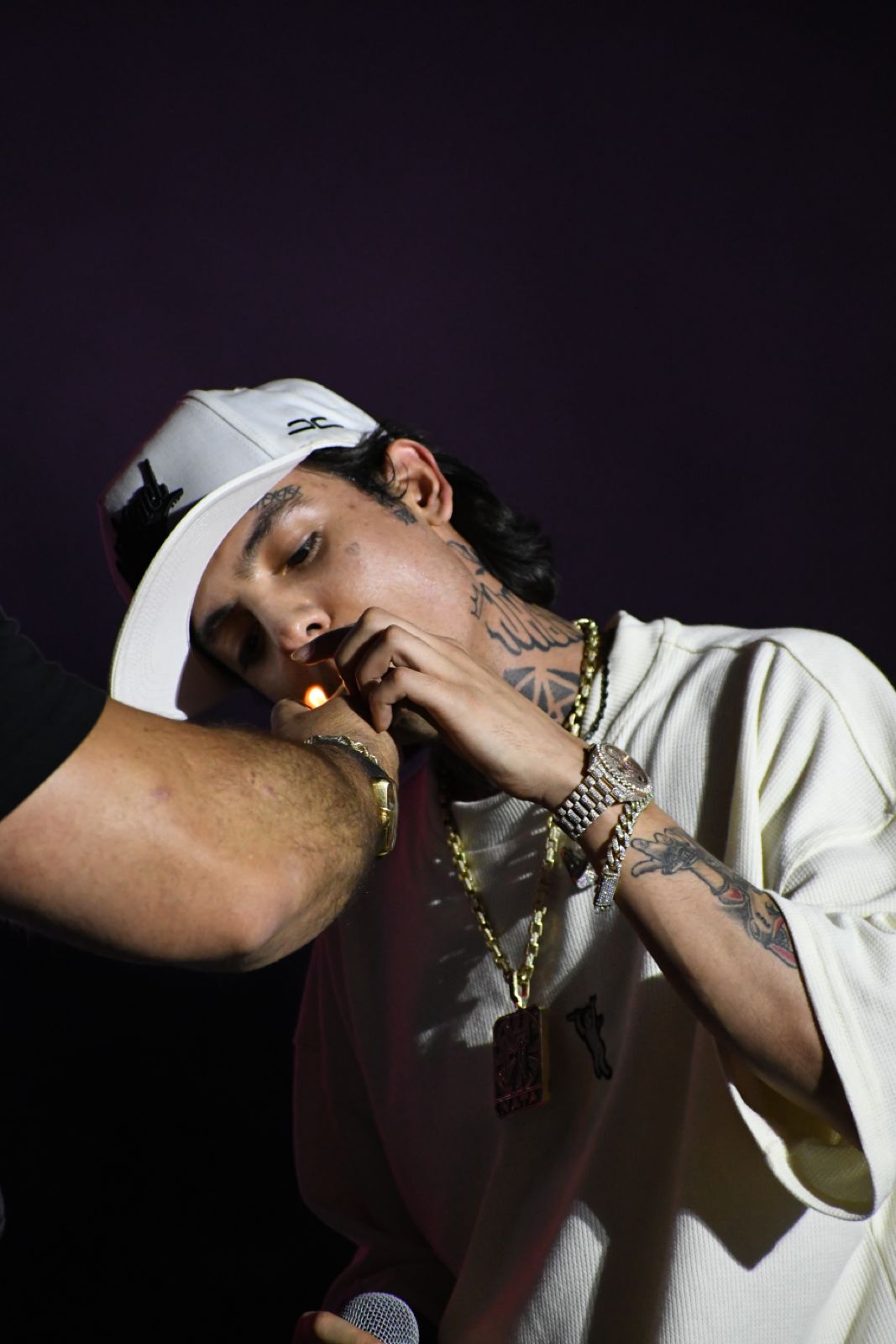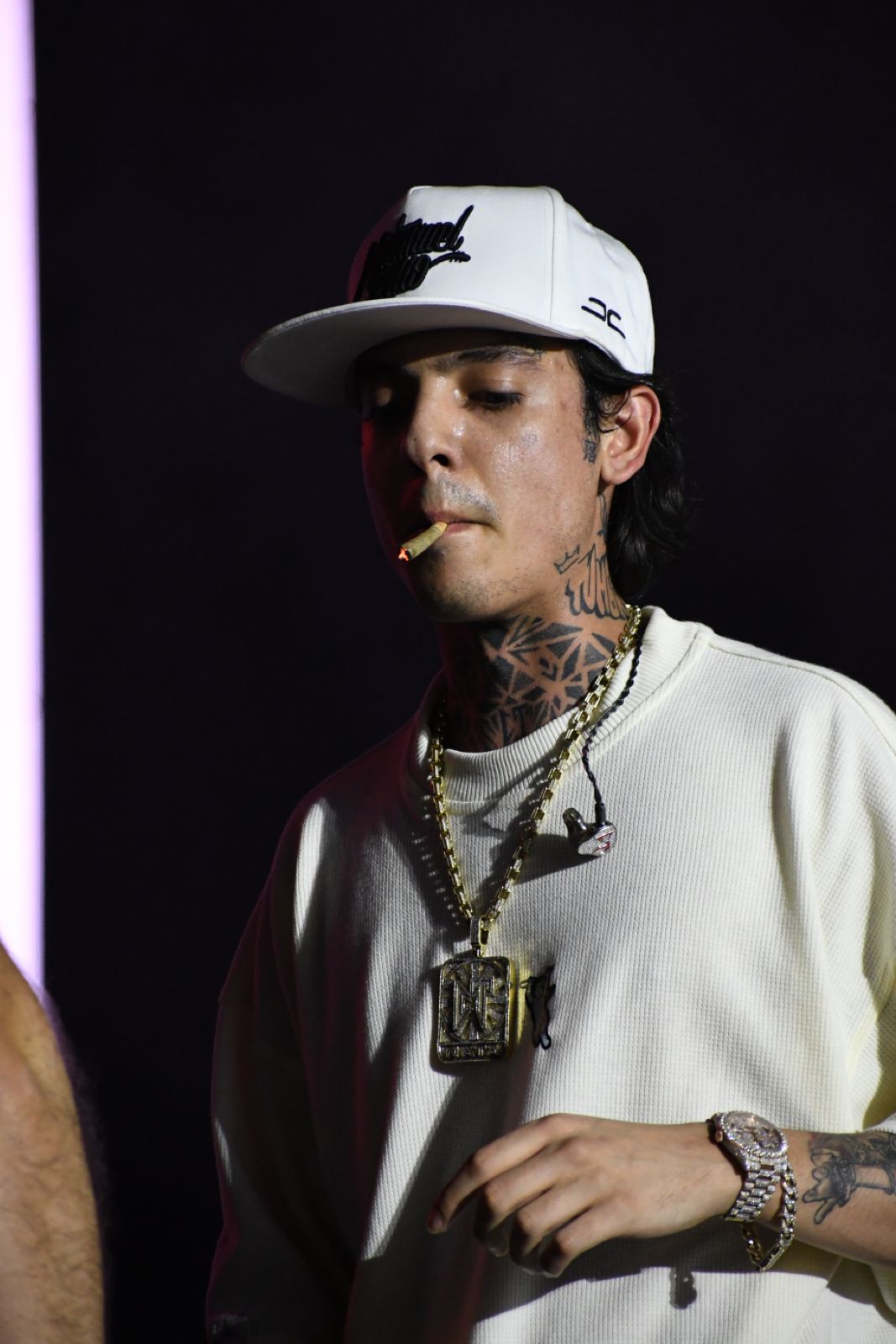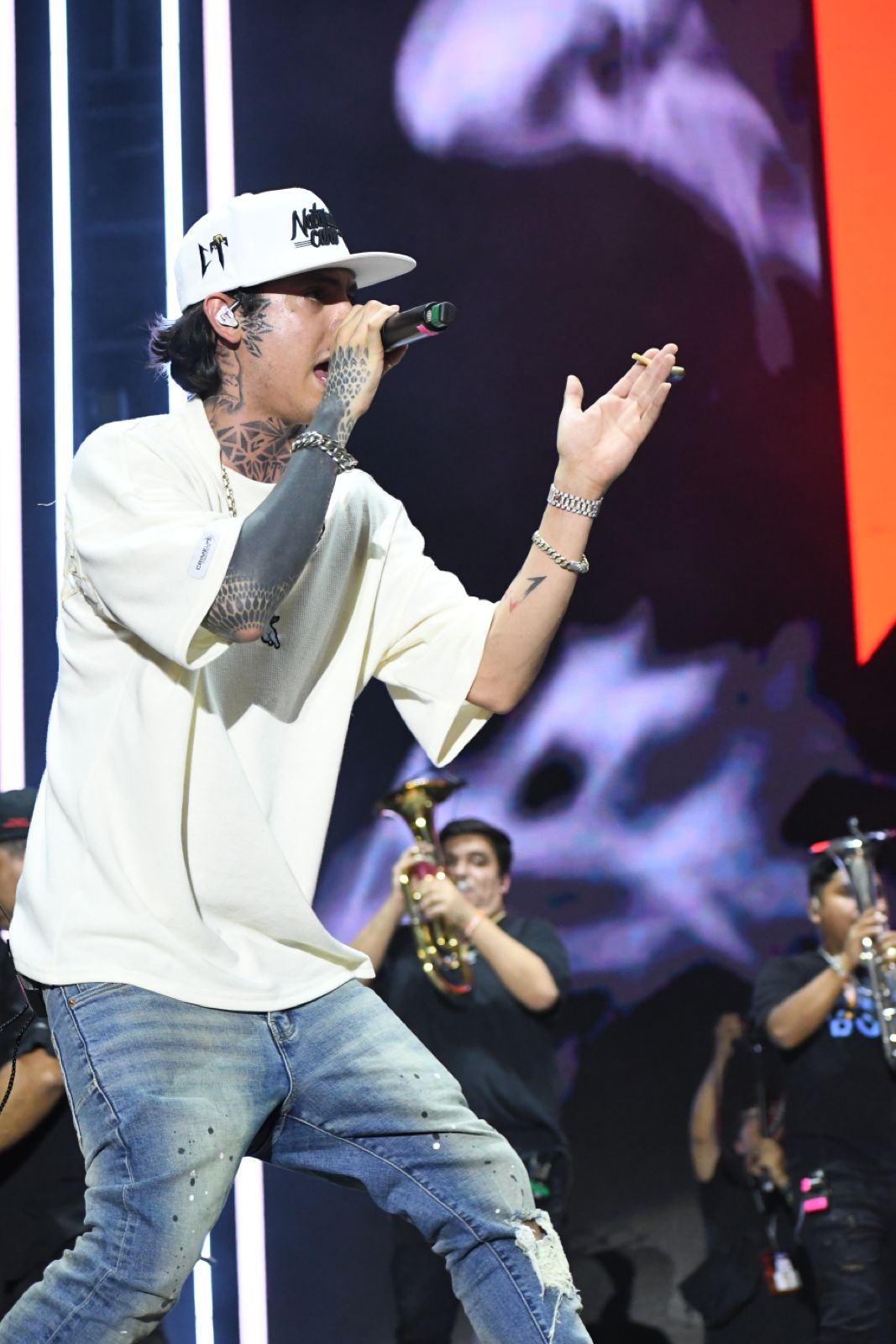 Cerca de la medianoche llegó el momento de subir el volumen a los corridos tumbados, y es que el rey de este género llegó con una actitud por demás fiestera: Natanael Cano. Y no solo eso, sino que llegó acompañado de amigos, pues con Gabito Ballesteros y Oscar Maydon armó una frenética presentación en la que destacaron canciones como «AMG», «Porte Exuberante», «Kilos de H», entre otras.