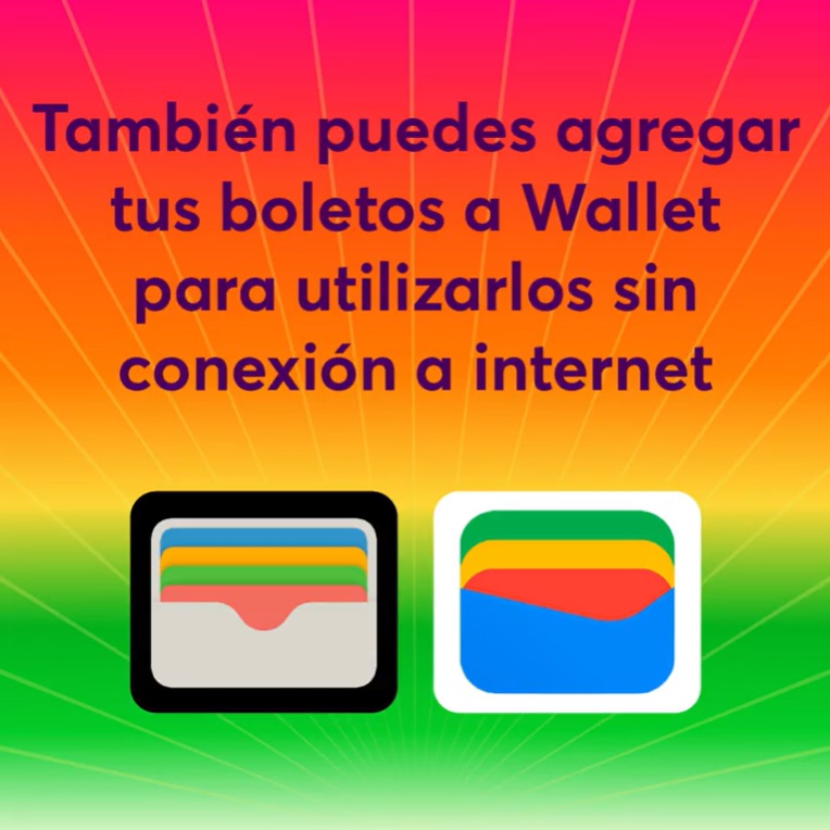 Estos boletos también cuentan con ‘Transfer‘, una opción que te ayuda a que si tú compraste los boletos para tus amigos se los pueden transferir de manera fácil y rápida. Además de poder agregarlos a Wallet o Cartera Digital de celular para poder utilizarlos sin conexión a internet.