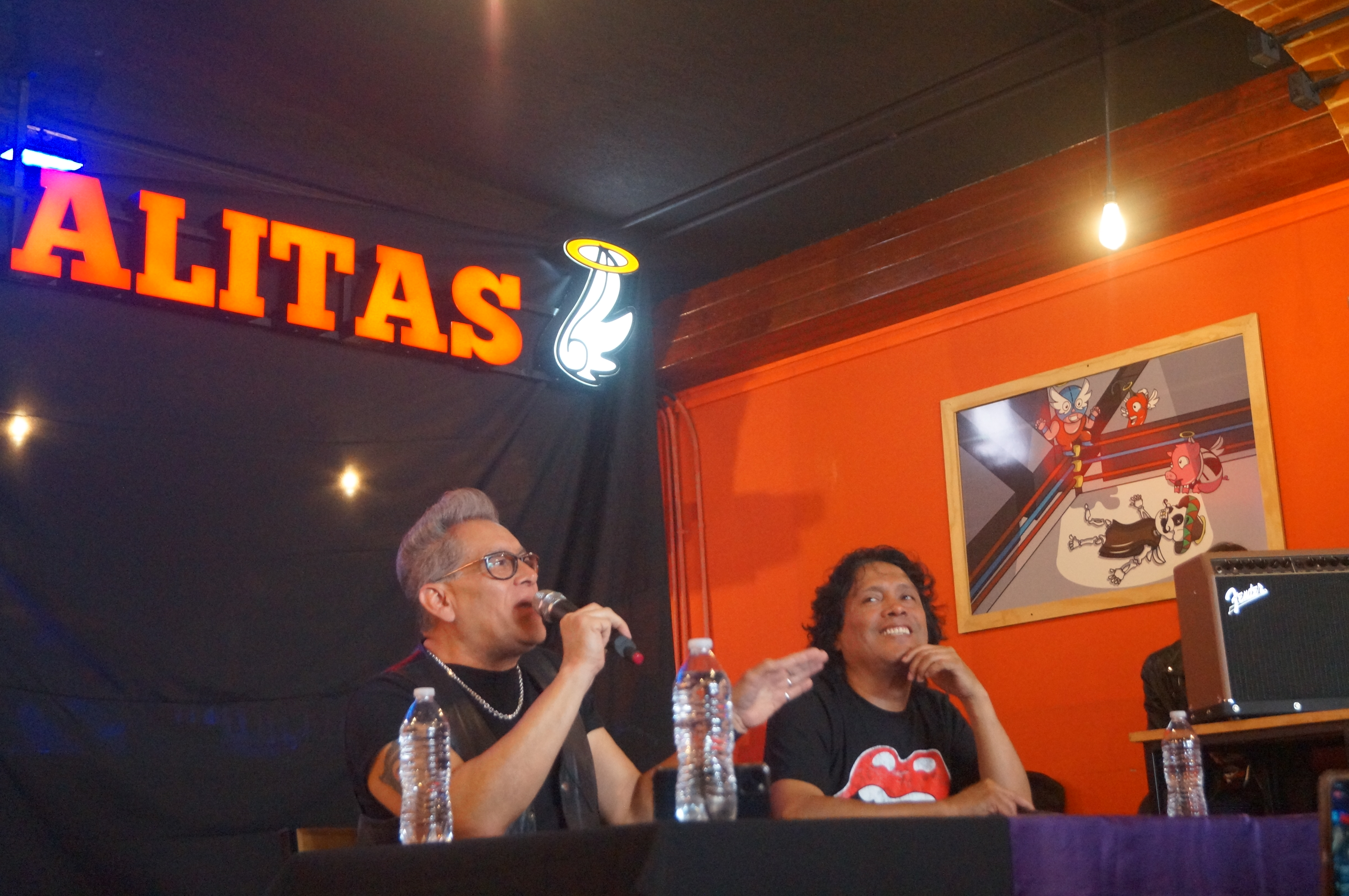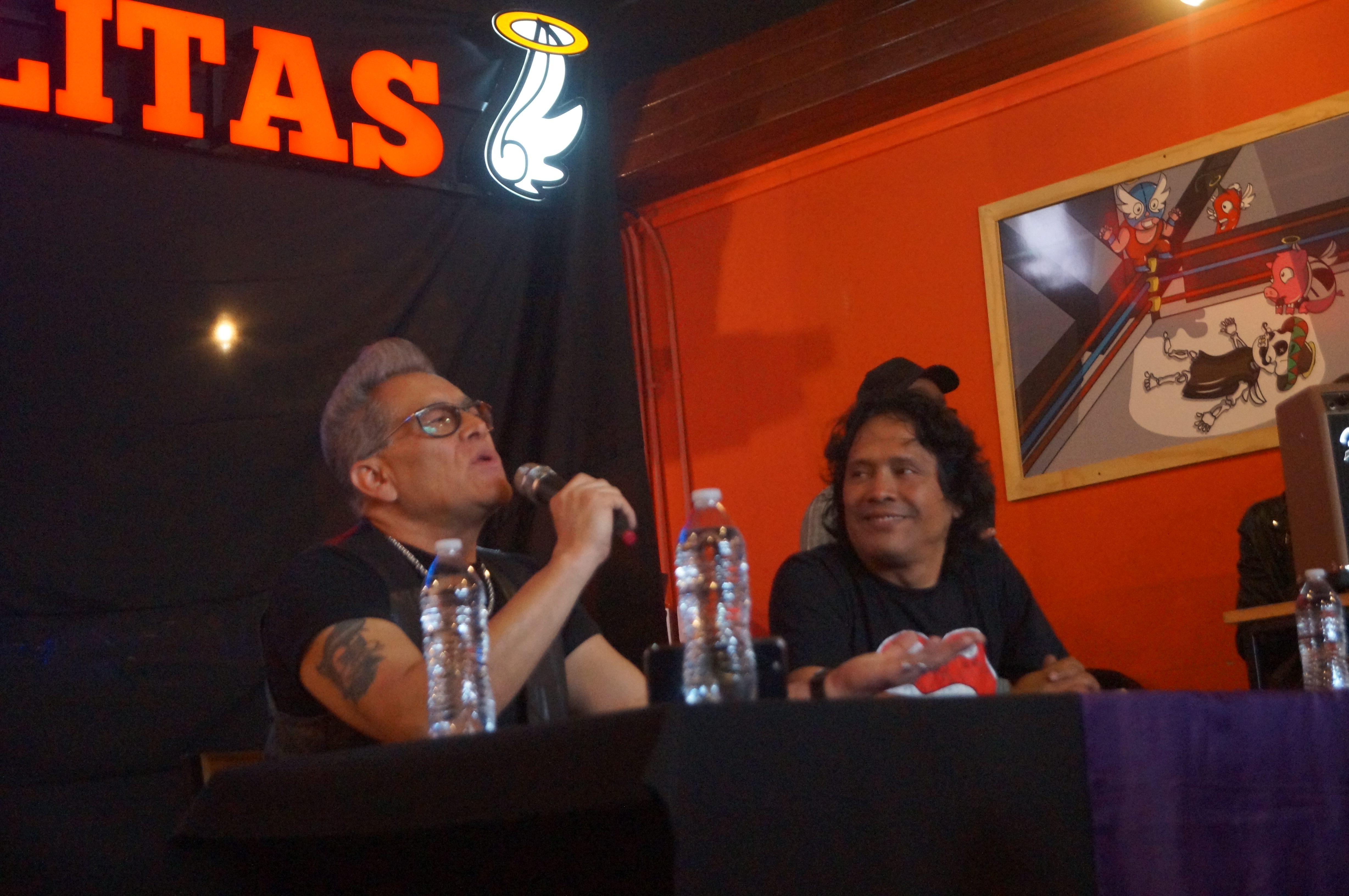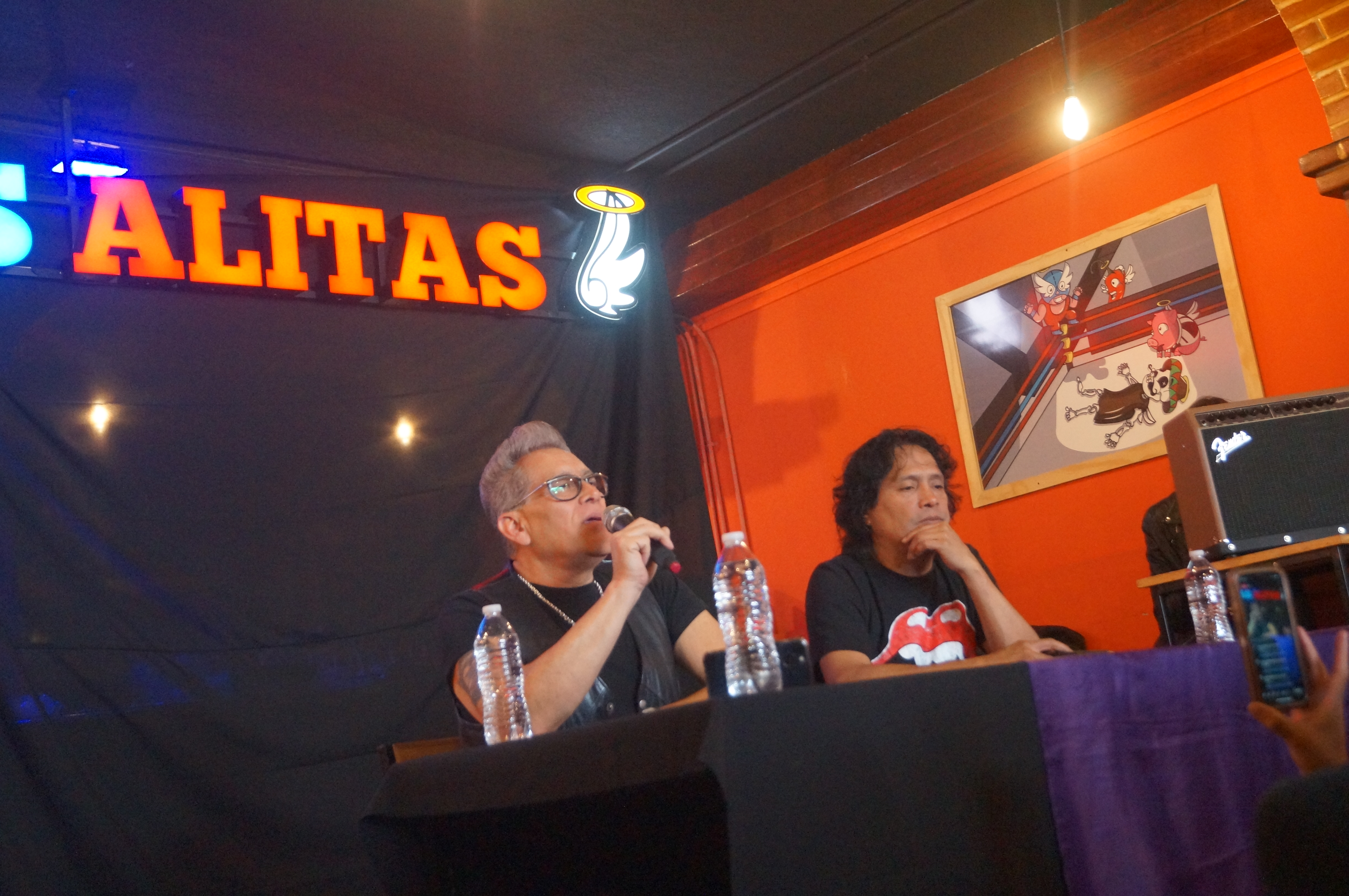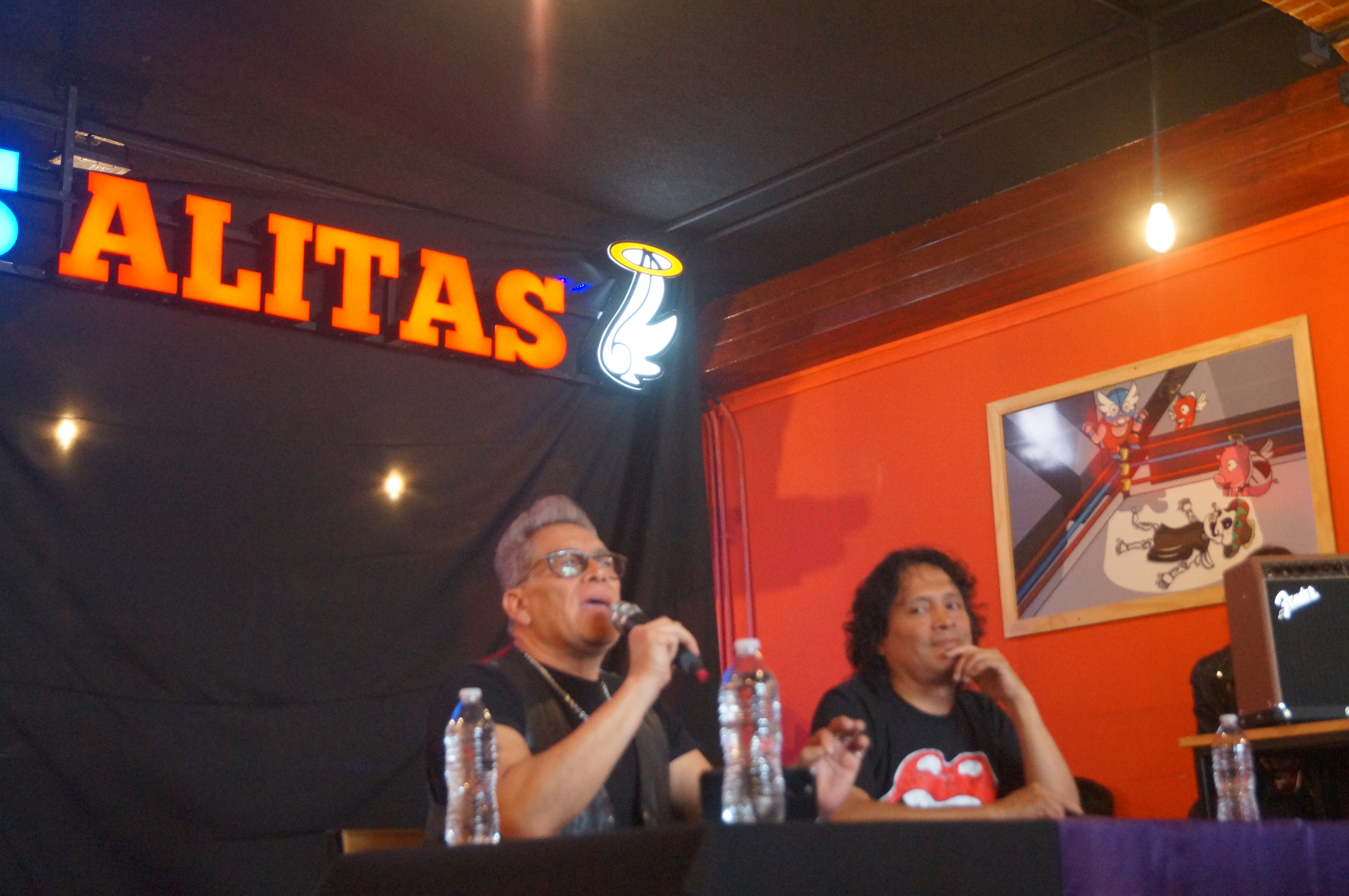 En las santas alitas sucursal Azcapotzalco se llevó a cabo la conferencia de prensa con para poder platicar sobre algunos temas importantes como: el próximo concierto que tendrán este viernes 02 de junio, las siguientes colaboraciones que tendrán con grandes estrellas del rock mexicano, sus sueños por cumplir y recordar la increíble vida que han tenido en el rock and roll.