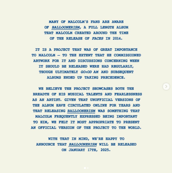 La forma en la que Mac notó que podía descargar el estrés y consumo de sustancias fue con la música. Al momento de trabajar en varios proyectos en simultaneo, uno de los que no salieron a la luz fue Balloonerism, disco que, sin llamar la atención en el lejano 2014, Mac mostró su lado más honesto y sin filtros.