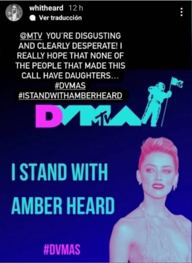 “¡@MTV eres asqueroso y claramente desesperado! Realmente espero que ninguna de las personas que hicieron esta llamada tengan hijas… #DVMAS #ISTANDWITHAMBERHEARD”, escribió Henriquez en una historia de Instagram.