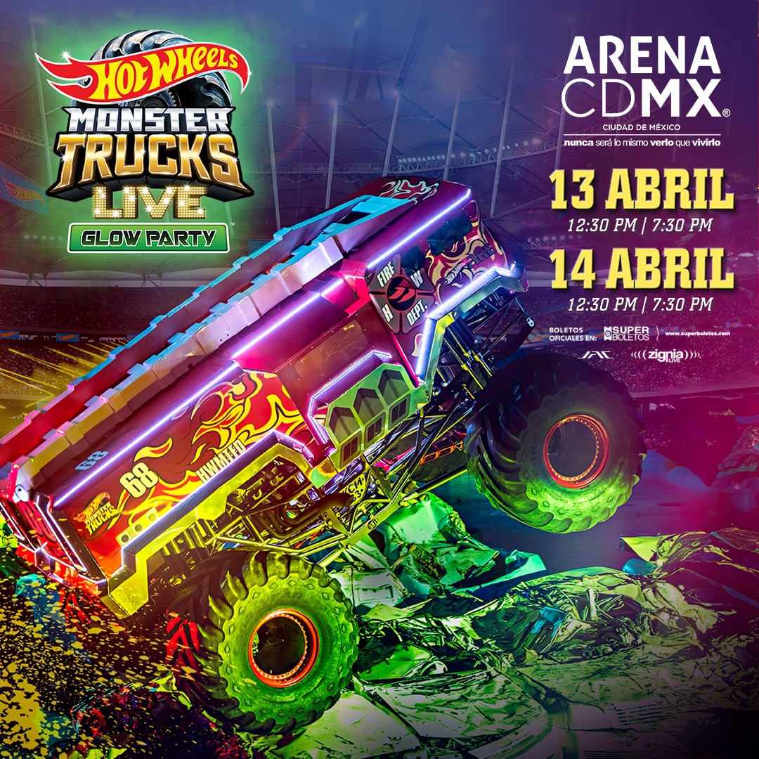 El próximo 13 y ahora con una fecha más, la cual se llevará a cabo el 14 de abril a las 7:30 pm, llega por primera vez a México él ¡Hot Wheels Monster Trucks Live Glow Party!, un evento donde todos los fanáticos de todas las edades podrán disfrutar de una experiencia única al ver sus Hot Wheels Monster Trucks favoritos.