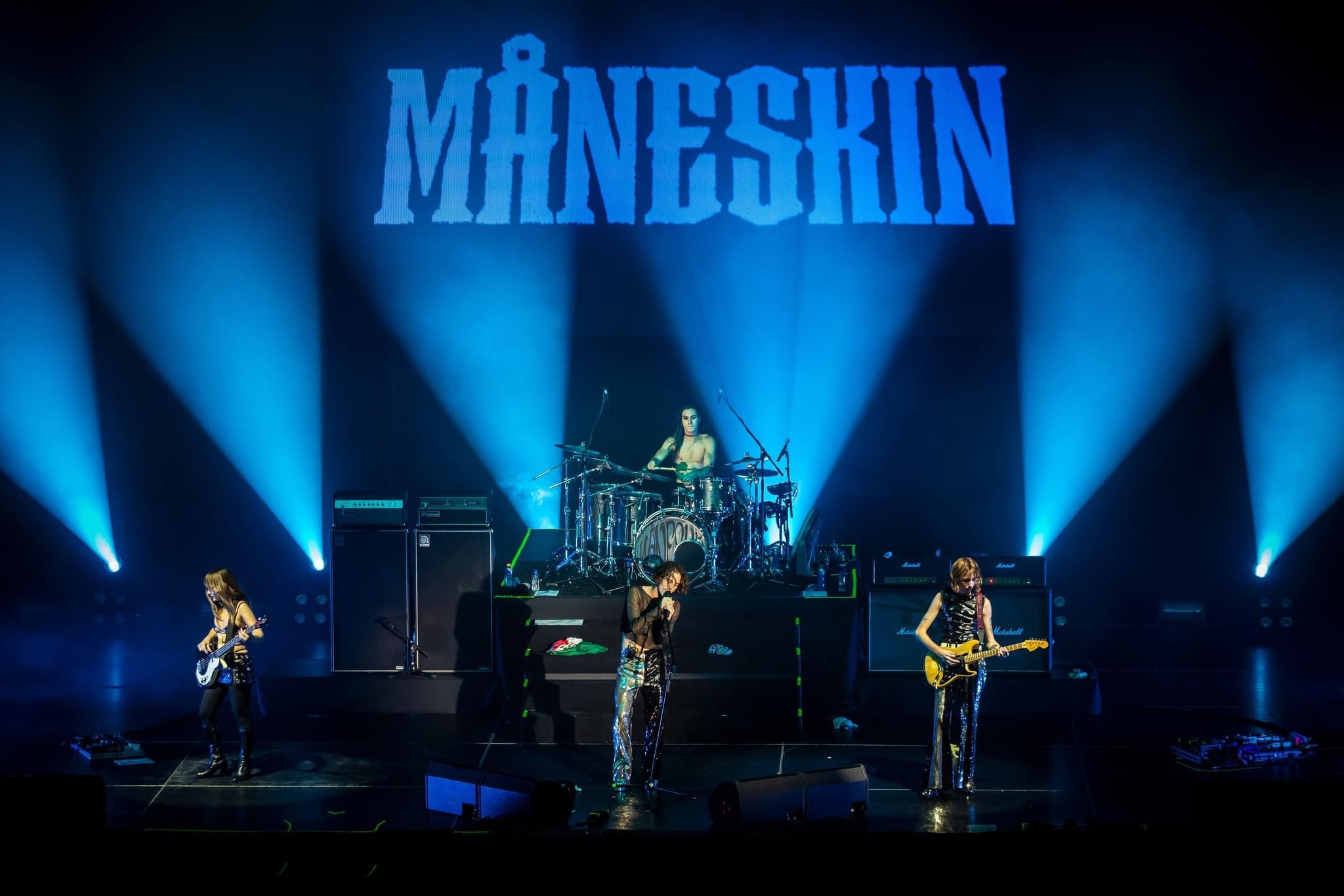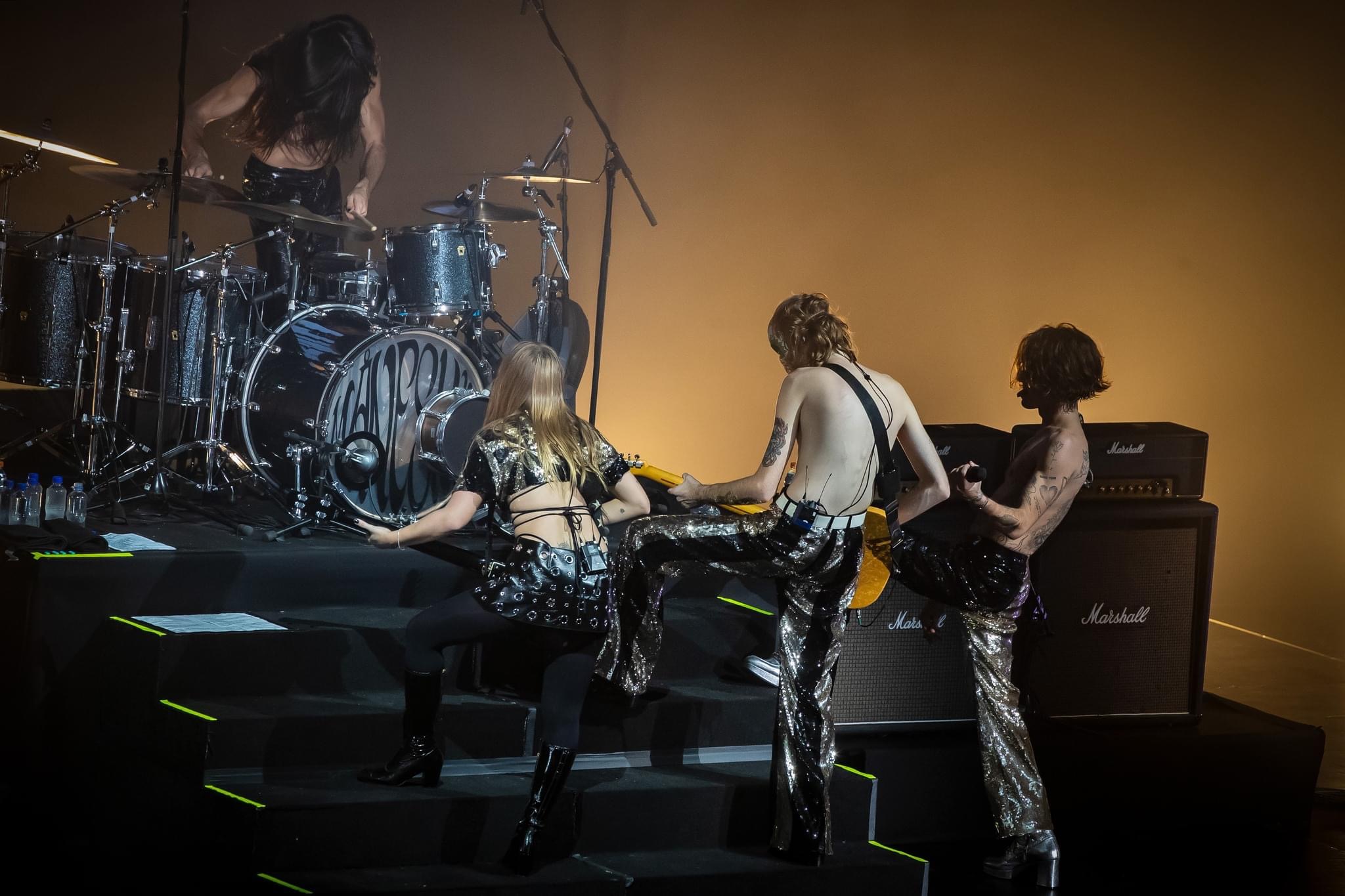 Damiano David, Victoria De Angelis, Thomas Raggi e Ethan Torchio; quienes darían la patada inicial de su recital con el tema “Cool Kids”, mismo que anunciaron formará parte de su próximo material discográfico.
