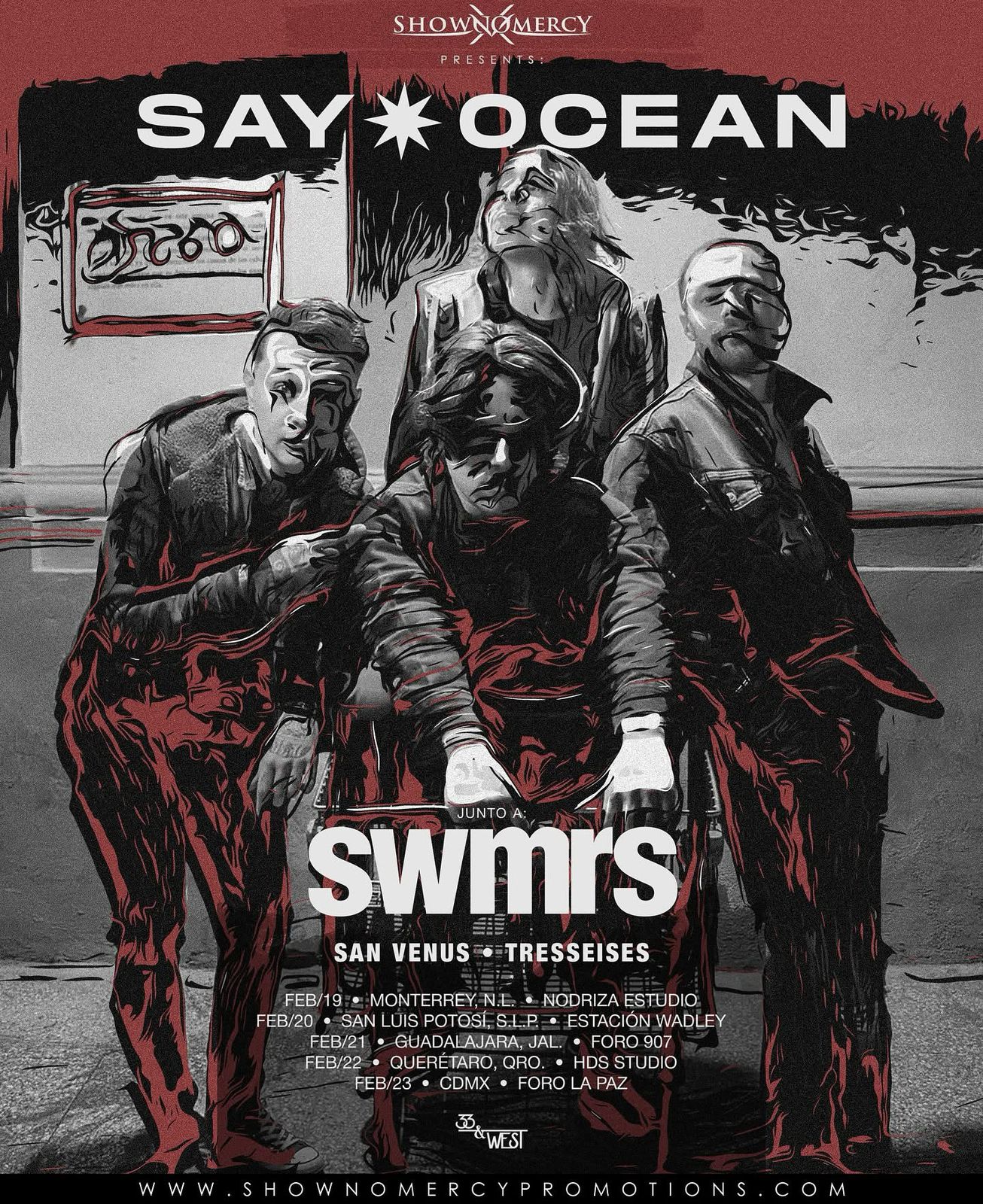 Say Ocean, una de las bandas más representativas de la escena emergente de México, prepara una gira especial para comenzar a calentar motores sobre su próximo material discográfico. Del 19 al 23 de febrero, la banda tendrá una gira única junto con la bandas Swmrs, San Venus y Treseises.