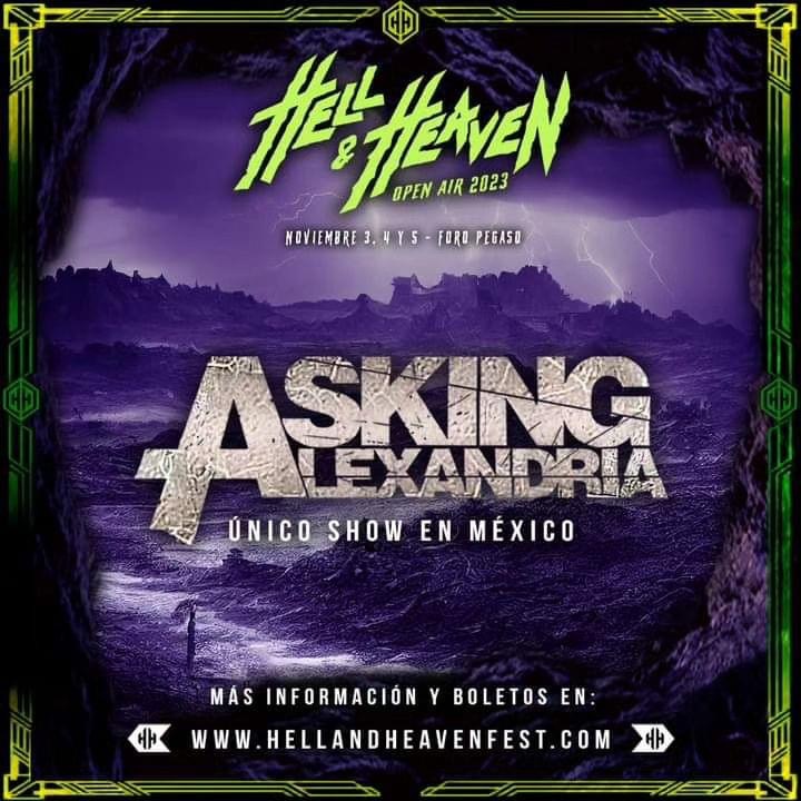 El día de hoy se hizo oficial que tanto Mudvayne como Asking Alexandria formarán parte de la edición 2023 del Hell and Heaven que se llevará a cabo los días 3, 4 y 5 de noviembre en el foro pegaso de Toluca.
