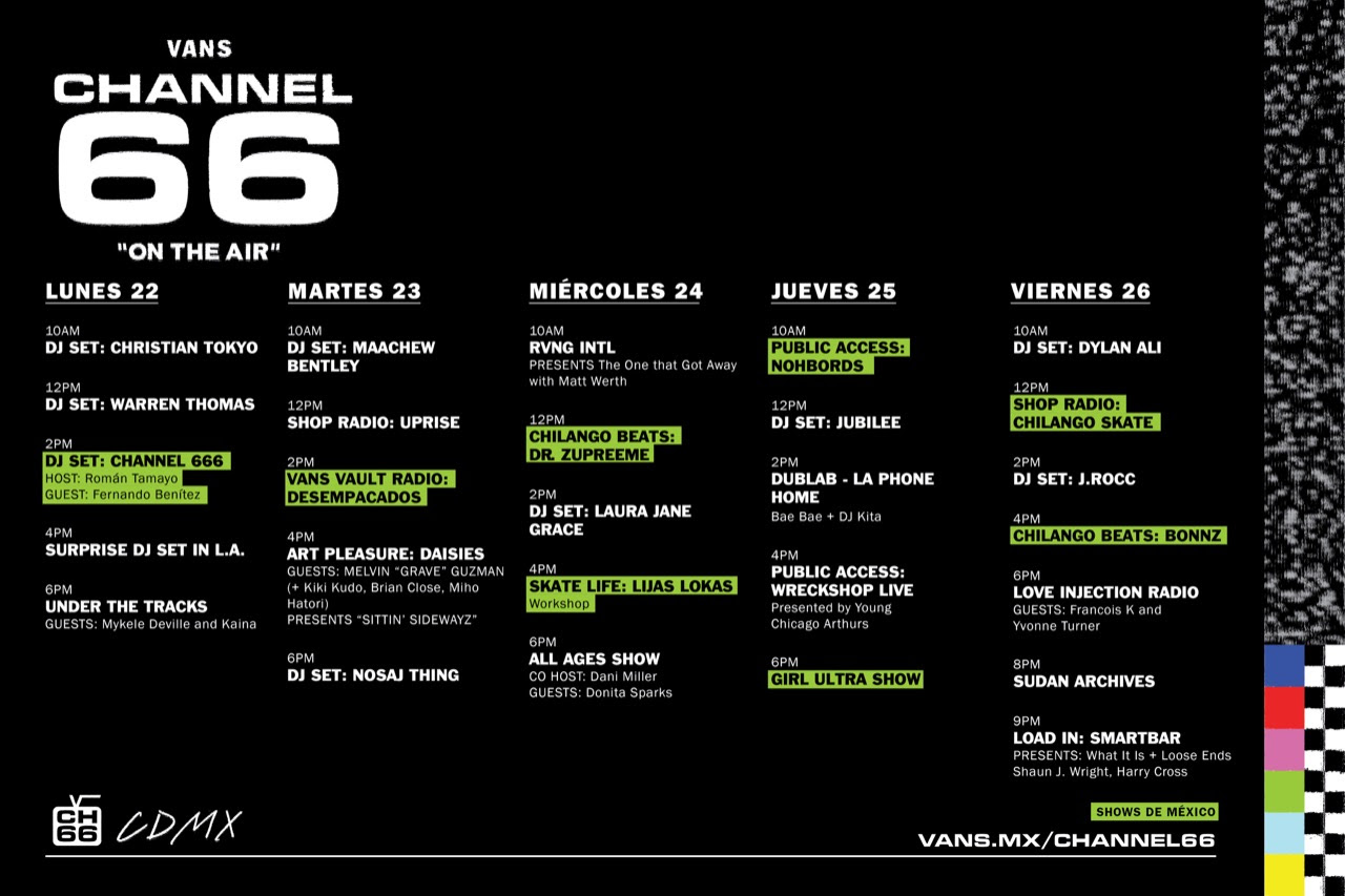 Consulta los detalles en vans.mx/channel66 para mantenerte al día con las transmisiones de Channel 66 y los próximos eventos en línea.