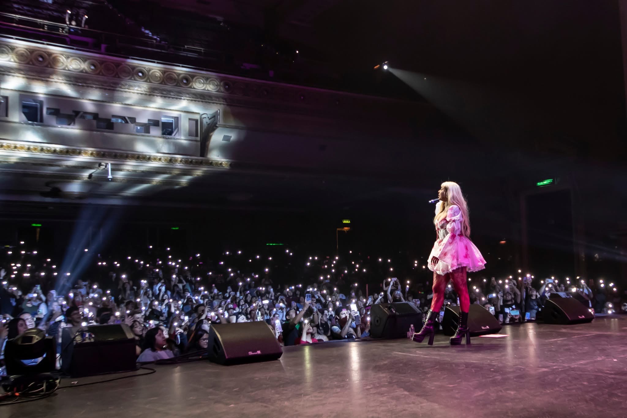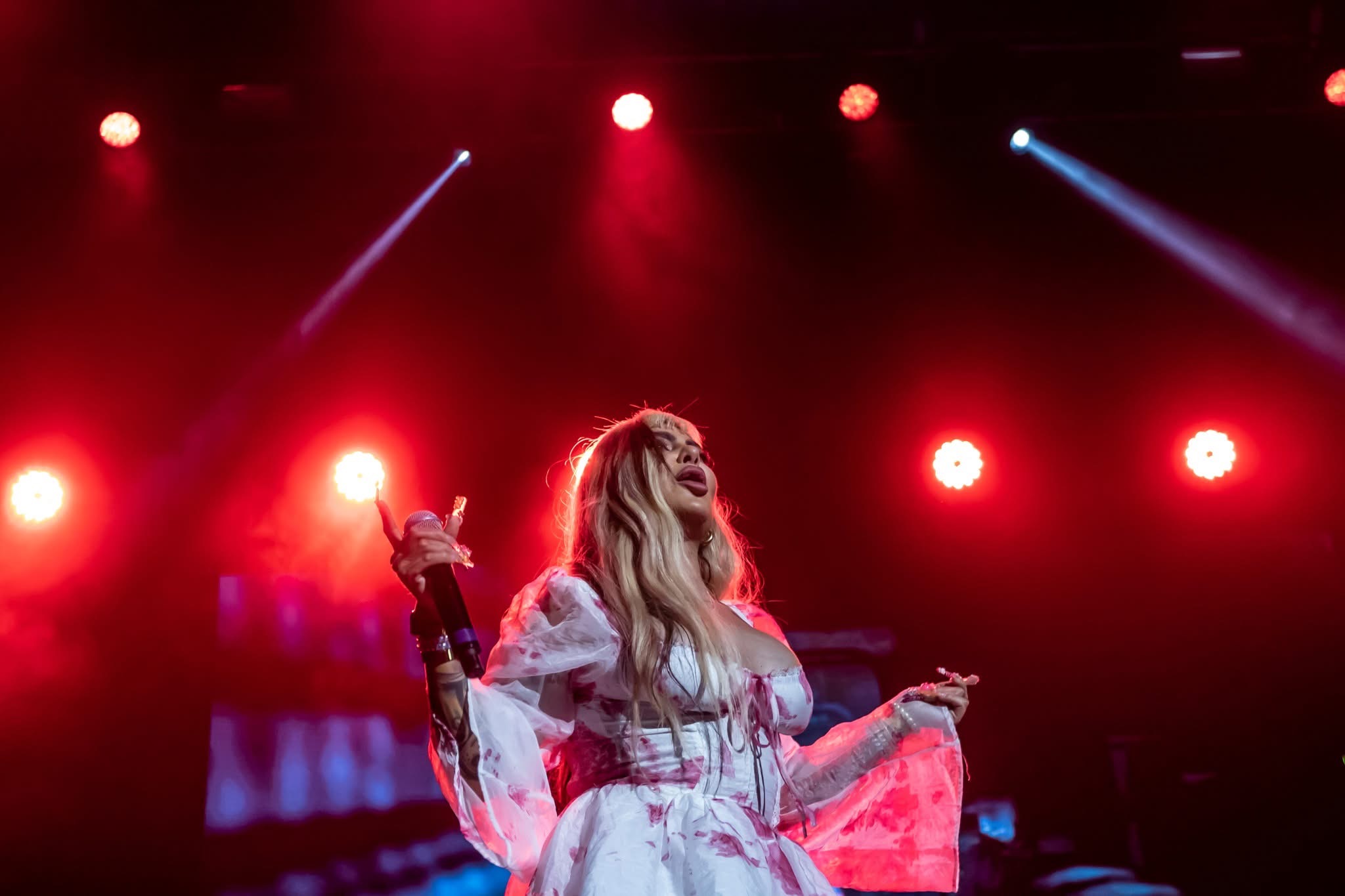 La originaria de Salamanca y con 27 años, llegó al teatro metropolitan donde predominar a las mujeres para cantar Rap corridos y hasta la canción de Paquita, El Barrio, chequen Blanco