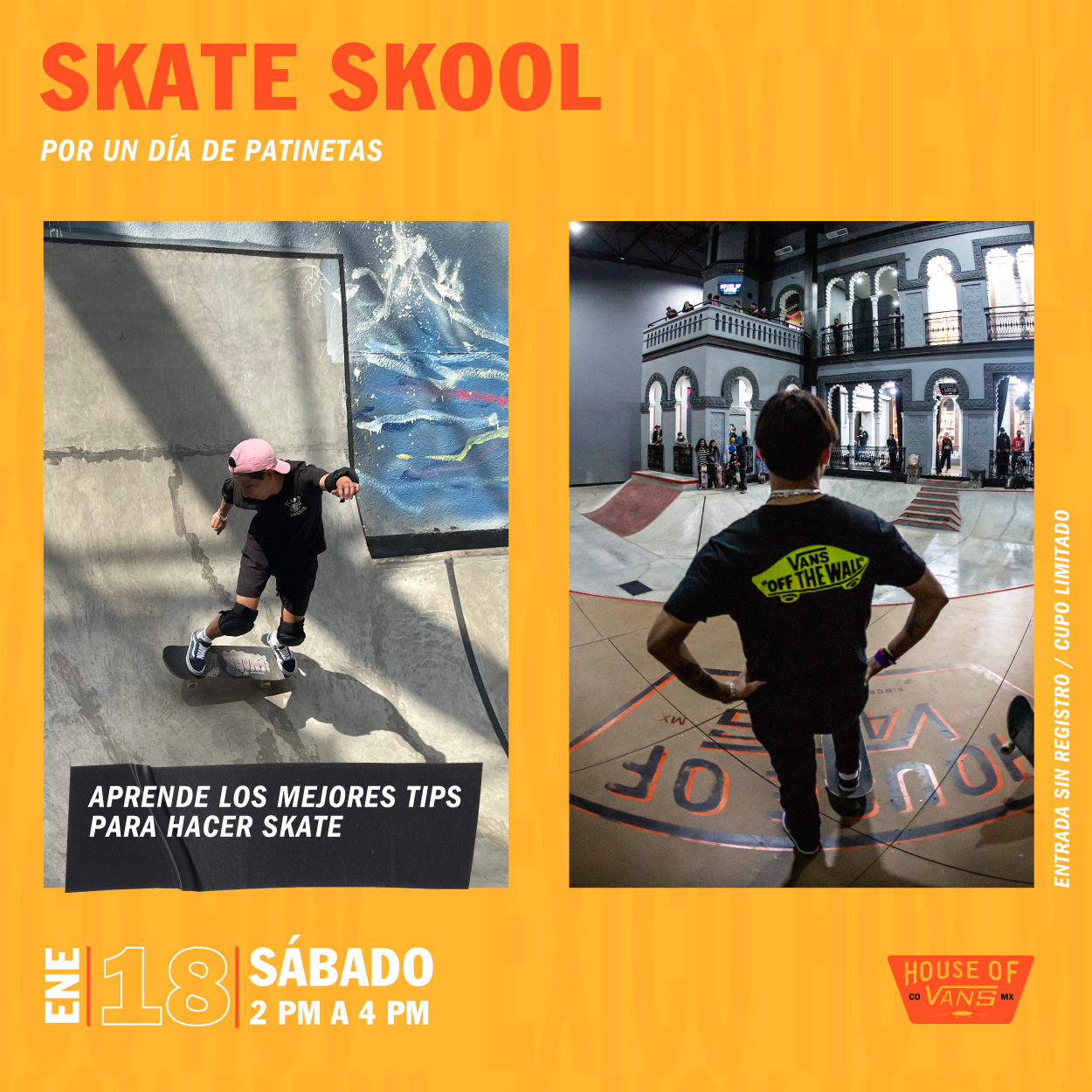 Como es costumbre en la casa Vans, los sábados puedes llevar tu patineta y patines para aprender nuevas habilidades y lograr dominar una nueva forma de transporte alternativo que no genere contaminantes.