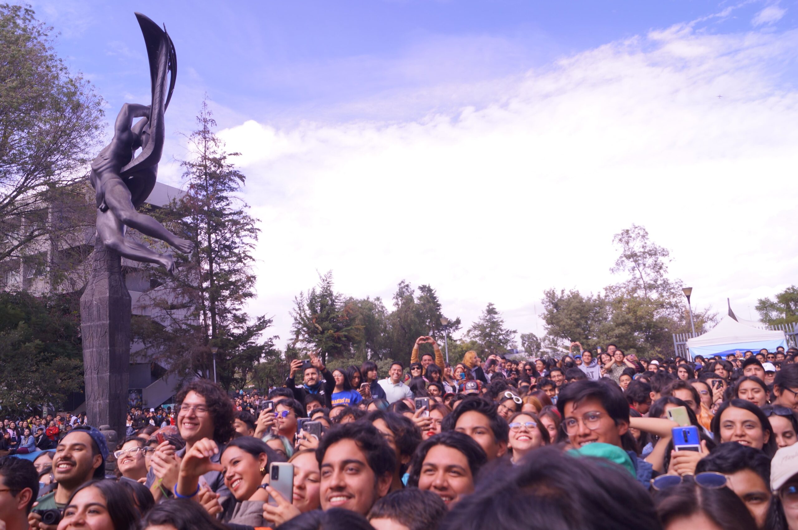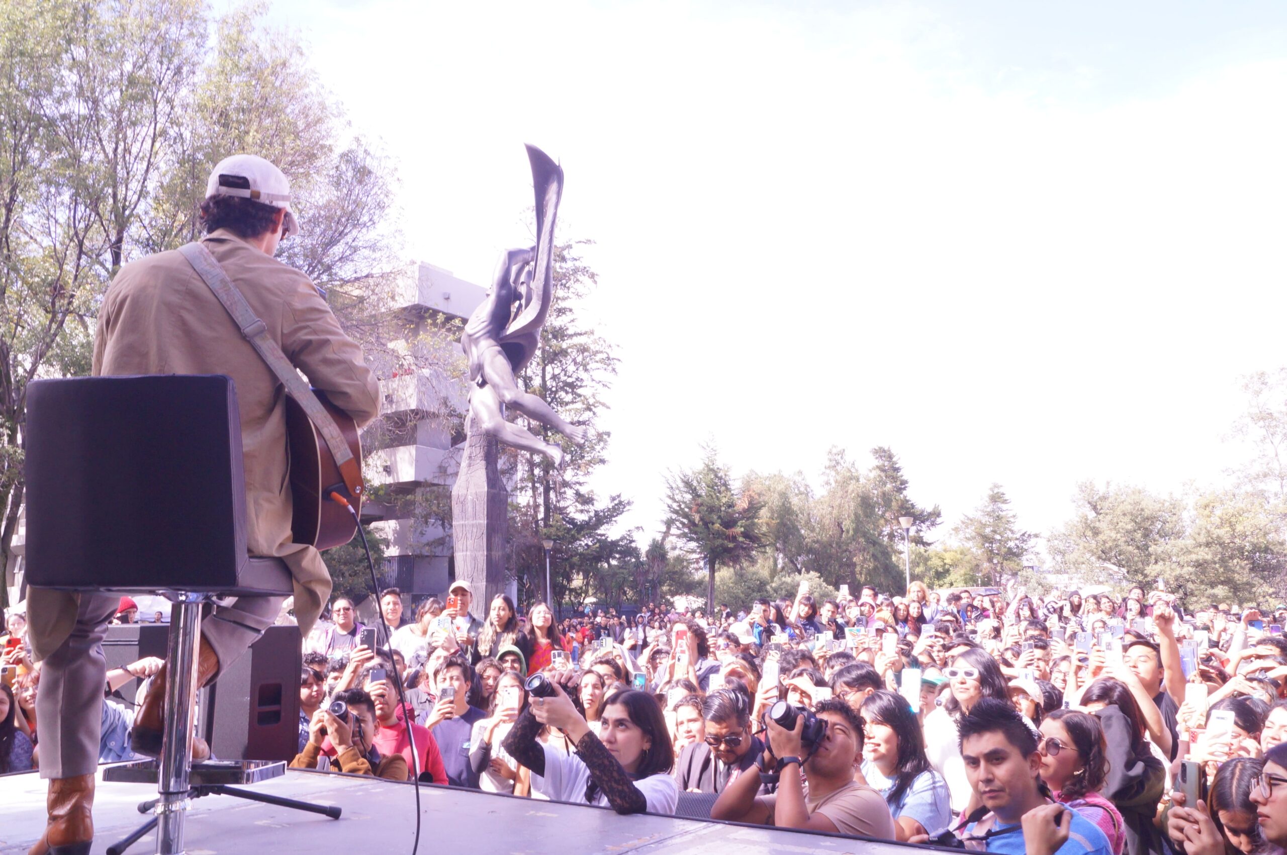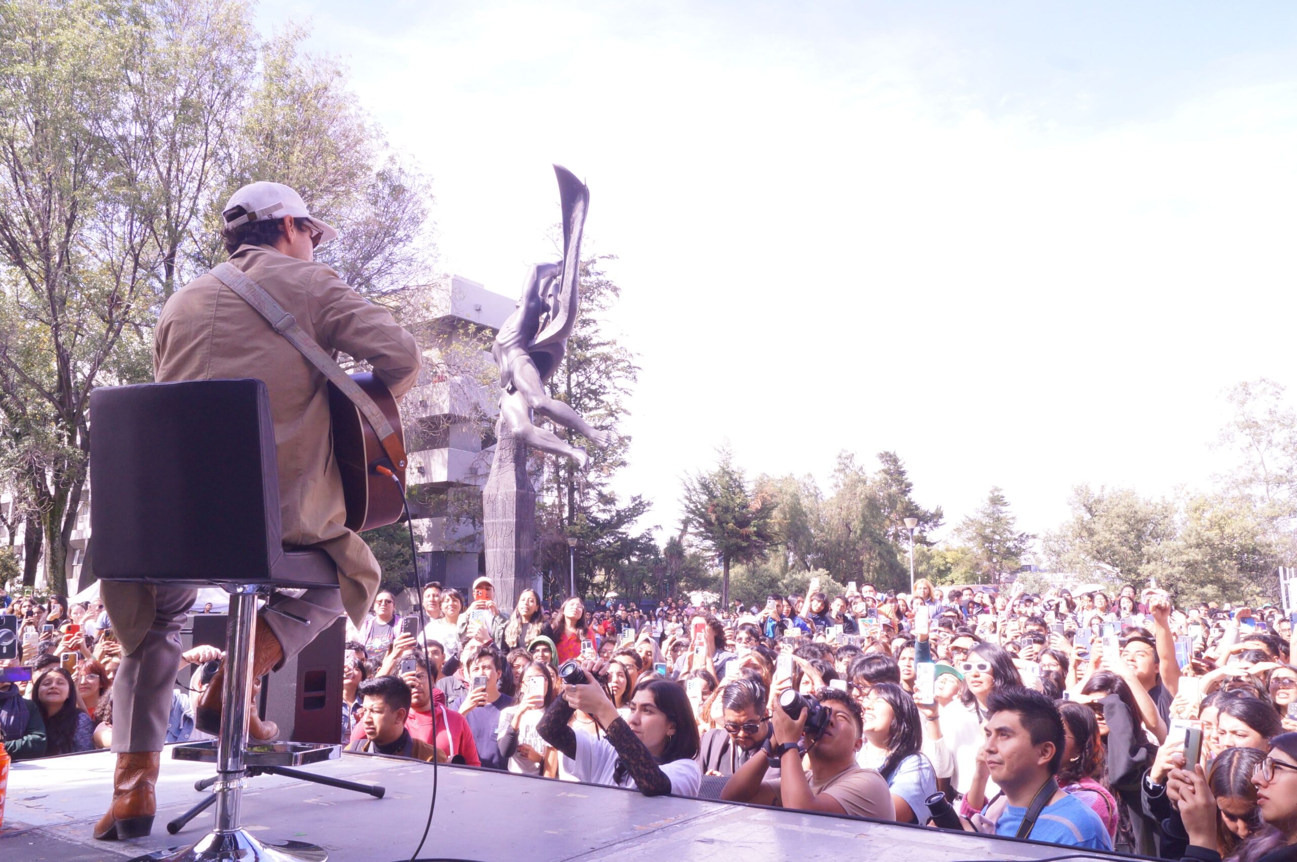 Caloncho hizo cantar a toda la facultad de ciencias de la UNAM con una pequeña presentación en la fuente de Prometeo, donde complació a sus fans interpretando éxitos como «Optimista», «Somos instantes», «Palmar» y otros que serán parte de su próximo álbum.