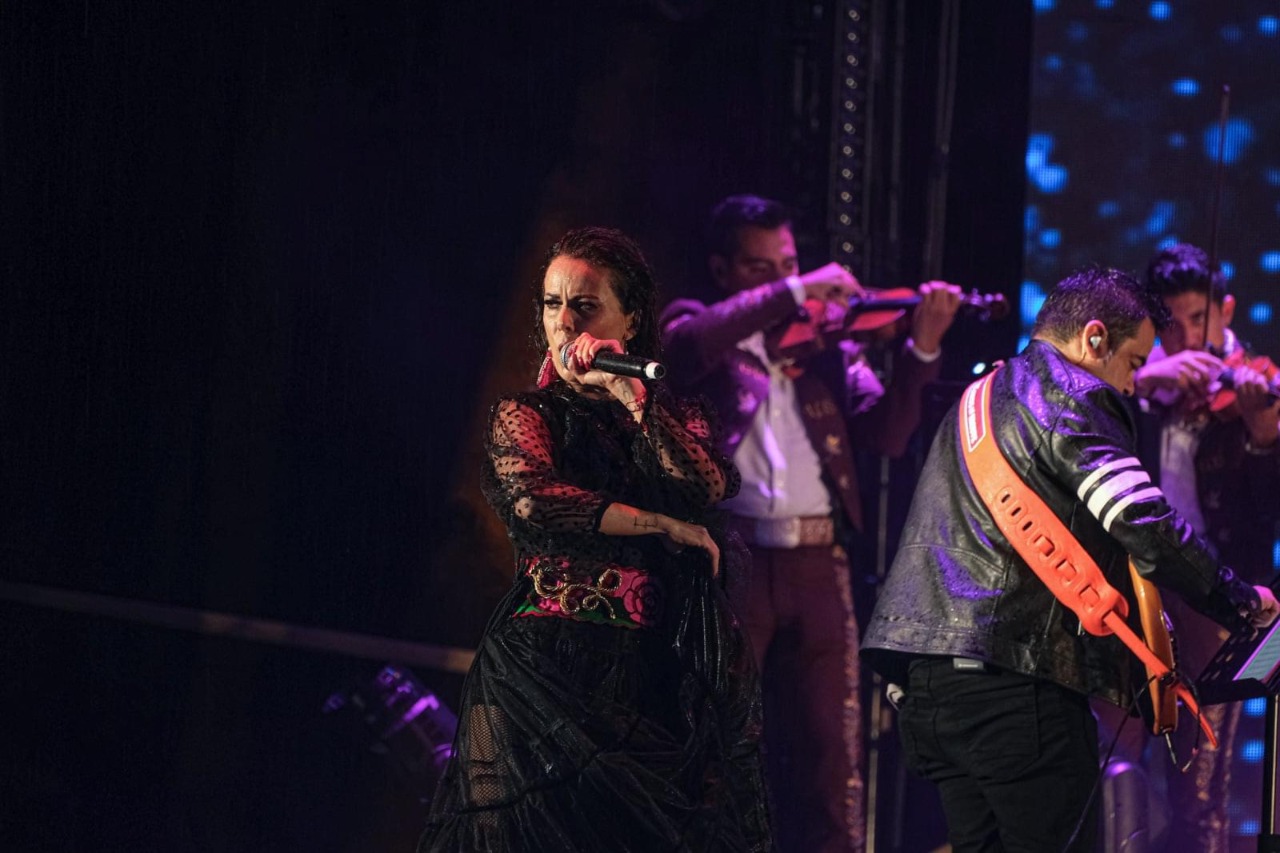 ¡El show no paro!, Edith Marquez demostró su profesionalismo al no dejar que el clima impidiera que su presentación continuara después de tanto tiempo de estar lejos de los escenarios por la pandemia.