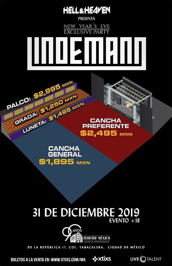 El próximo 31 de diciembre Live Talent tiene el mejor plan para cerrar el año con la presentación de Lindemann en el Frontón México.