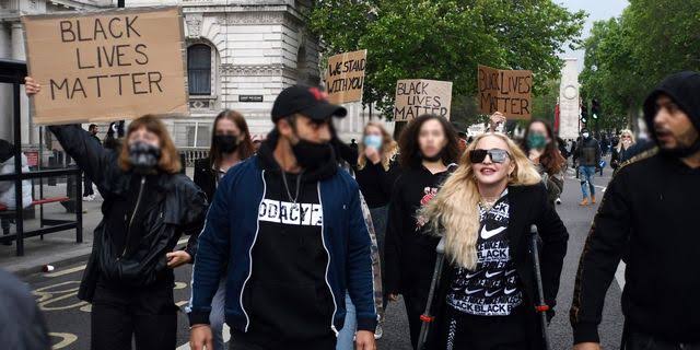 El mes pasado, Madonna asistió a una protesta de Black Lives Matter en Londres con muletas.