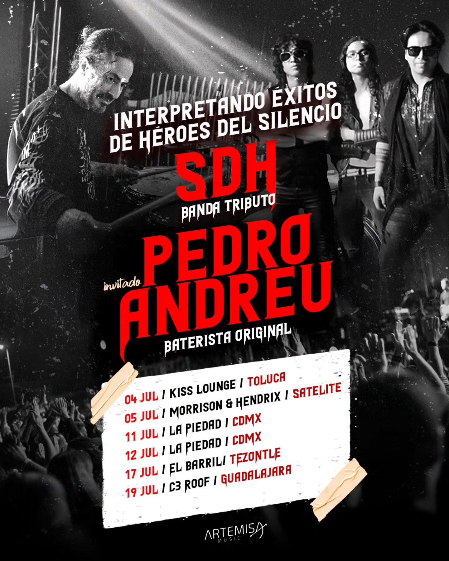 En las fechas del once y doce de julio en Ciudad de México, y 19 en el C3 Roof Stage de Guadalajara, Pedro estará presente. Se suman a la cartelera tres icónicos bateristas de la música mexicana para honrar la vida y obra de Pedro. Estos son Elohim Corona, de Moderatto; Gil Santiago Rangel, de DLD; y Eduardo Carrillo, de Ágora. Este último mencionó lo siguiente: “Tocar en estas fechas no es un encargo, es un privilegio. Pedro nos marcó a todos. Y hoy estamos aquí para abrazarlo con música”.