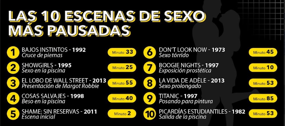 De acuerdo al análisis de la plataforma de entretenimiento Spoiler, el erotismo también ha servido como herramienta narrativa, en filmes como Don’t Look Now (1973) y Boogie Nights (1997), donde llevan el juego del «pausado» al límite en su escena final. Asimismo, la representación explícita de la intimidad femenina ha generado sus propias escenas icónicas, como en La Vida de Adèle (2013) o hasta en la inocente pero pícara escena -ahora icónica- de Kate Winslet posando al desnudo para Leonardo DiCaprio en Titanic (1997).