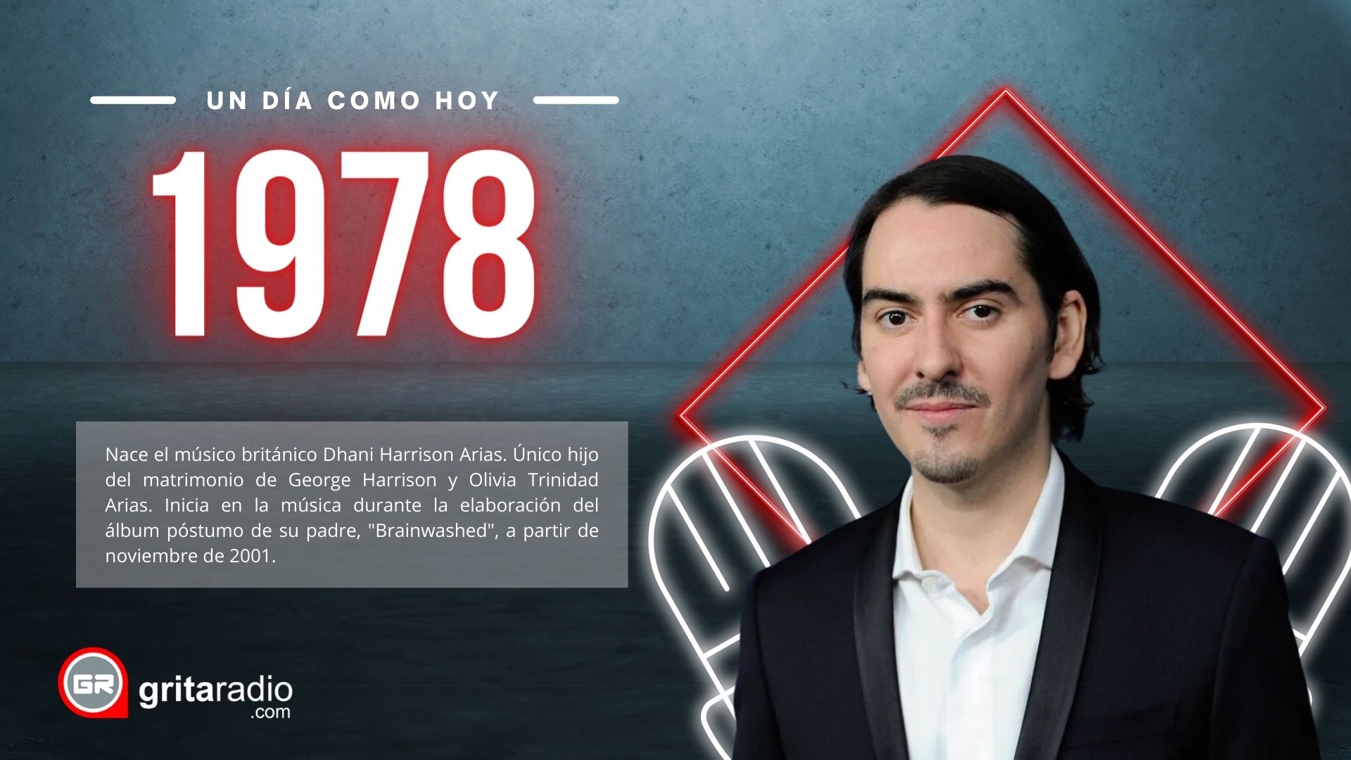 1978.- Nace el músico británico Dhani Harrison Arias. Único hijo del matrimonio de George Harrison y Olivia Trinidad Arias. Inicia en la música durante la elaboración del álbum póstumo de su padre, «Brainwashed», a partir de noviembre de 2001. En 2006 forma su primer grupo musical, Thenewno2, junto a Oli Hecks.